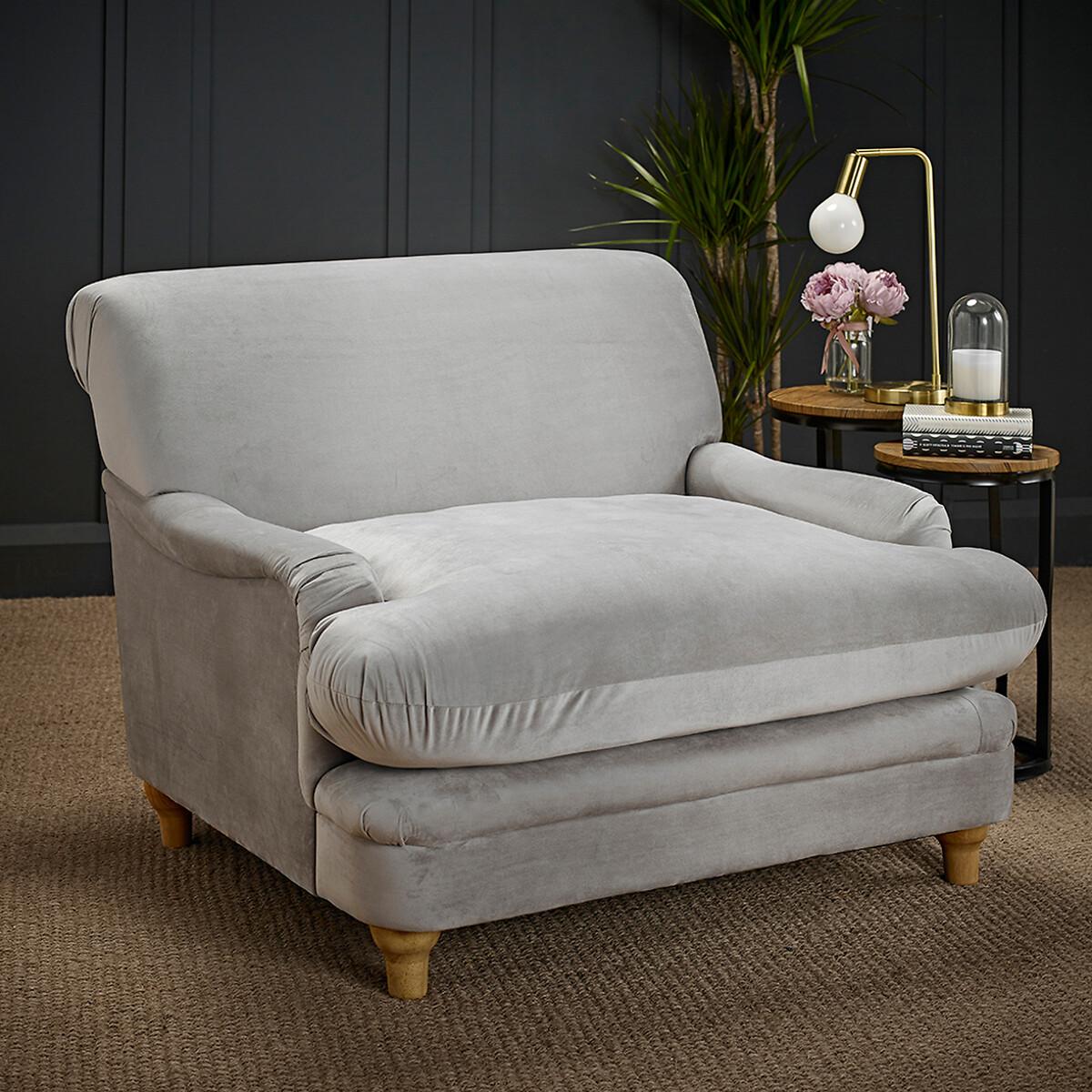 With a wide cushioned seat and upholstered in soft velvet material, this gorgeous velvet loveseat is the perfect place to get cosy. Product details. Velvet upholstery Light wood turned legs. English roll top arms. Rolled headrest. This chair requires some assembly, legs and fittings can be found under the seat pad. Free Swatch Service We offer a FREE swatch service. Email laredoute@lpdfurniture.co.uk with your name and address, along with the range name, Ref and colour choice. Your swatches will be delivered within 5 working days (subject to availability).Product Dimensions: 109cmx106cmx84cm. Seat Height: 55cm. Please remember to measure your available space before ordering. Packaged Dimensions: 77cmx 65cmx 53cm Weight: 25kg. Composition: Upholstered with a wooden frame. Please note: this product cannot be be delivered to all Offshore Islands Northern Ireland or Republic of Ireland. This product will be dispatched by one of our trusted suppliers. You’ll be contacted by their selected courier about your delivery.