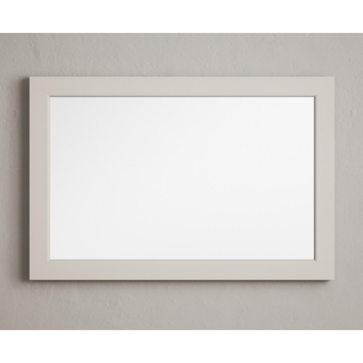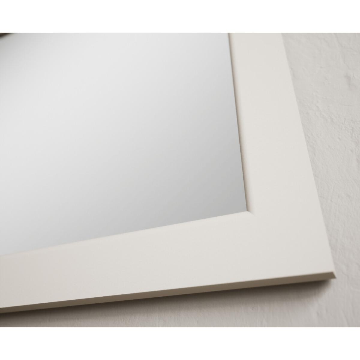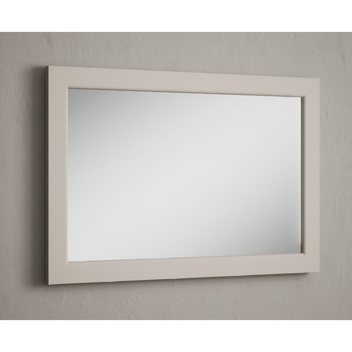 The Soft White Painted 90cm Wall Mirror features a solid hardwood frame with a soft white painted finish.