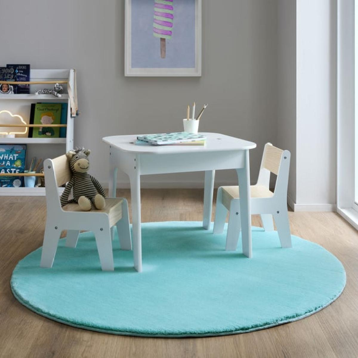 The softie round rug is a great choice for adding a cosy and inviting feel to a children's space or a relaxed corner. I love its plush texture which provides comfort underfoot, making it ideal for play areas or reading nooks. Its simple round shape helps soften straight-edged furniture and works well with neutral or pastel colour schemes, like in the picture. For styling tips, consider layering it with a few textured cushions or playful accessories to add interest, or pair it with light-painted furniture for a fresh, airy look. Its durability makes it practical for busy family areas, and it can easily be moved or cleaned, making it a versatile addition to your interior.