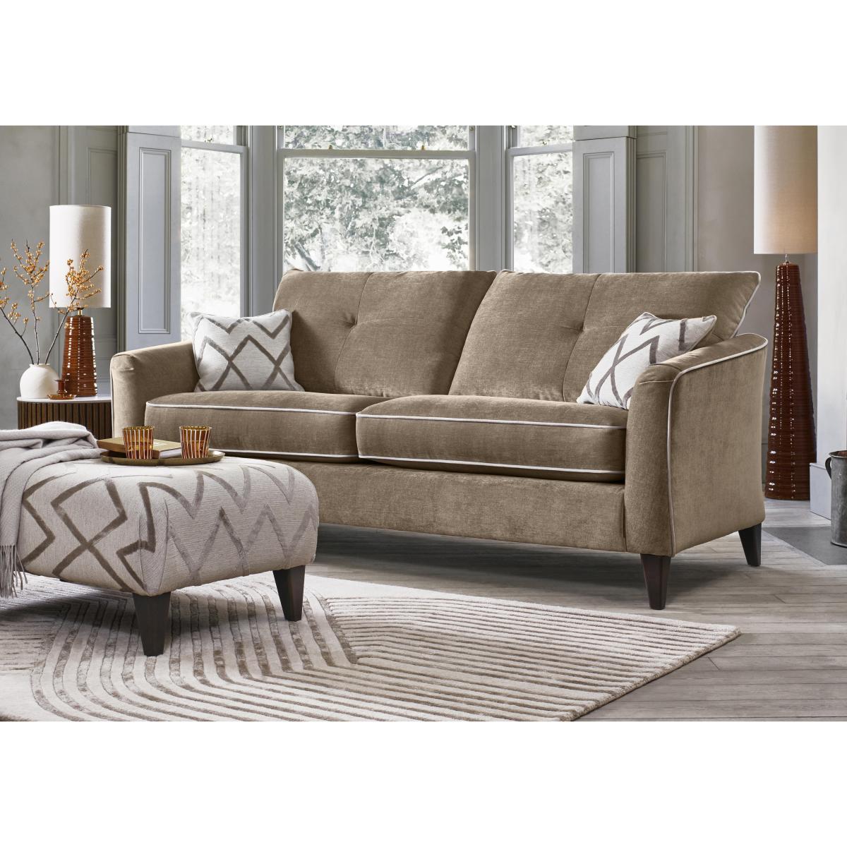 Urban glam style is yours with our very cool Soho range. Part of our Oh So Glam collection, the roomy sofas in this range showcase sumptuously deep seats and plumpness-guaranteed Duo Flex reversible seat cushioning. Choose from two different but equally glam looks – classic back style with complimentary accent cushions and scatter back style with an array of large feather-filled back cushions. The range’s sofas and armchair are upholstered in a wide choice of fashionable fabrics with optional contrast piping, and the collection also includes footstools. Handcrafted in the UK, the Oh So Glam Soho range is exclusively available at Furniture Village.