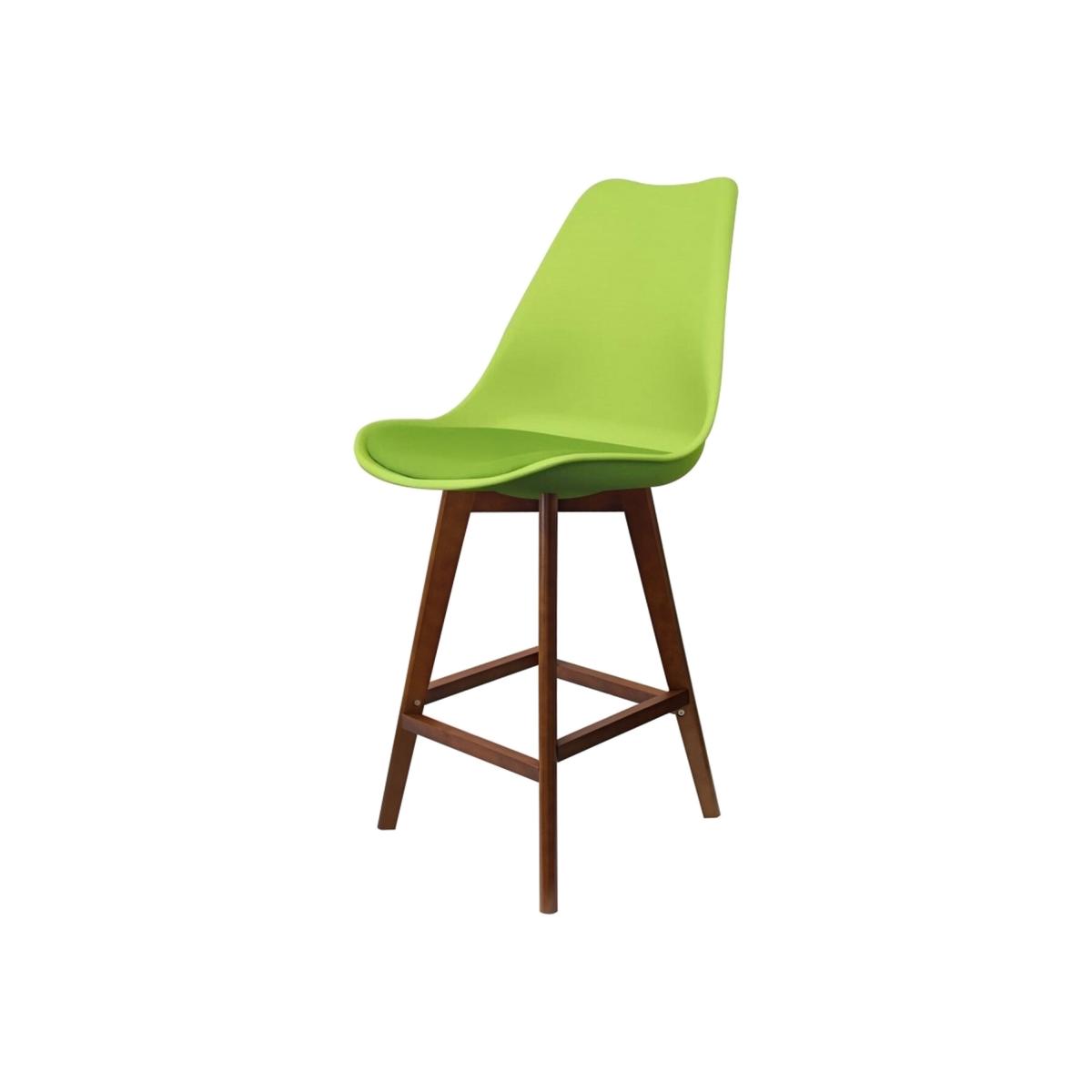 This Fusion Living Soho Plastic Bar Stool with Dark Wood Legs is part of a collection of bar stools and dining chairs, inspired by contemporary designs. If you are thinking of long leisurely meals or for time spent reading at a kitchen counter, this bar stool will easily facilitate all of that and more. With its shaped seat and back plus soft seat pad, this bar stool ensures that added comfort and with its four, squared, dark wood legs, this bar stool not only looks the part but is so sturdy too. The seat pad is so easy to wipe clean - this item is a perfect match for any contemporary home or commercial setting, this innovative design guarantees that this piece will enhance any room.