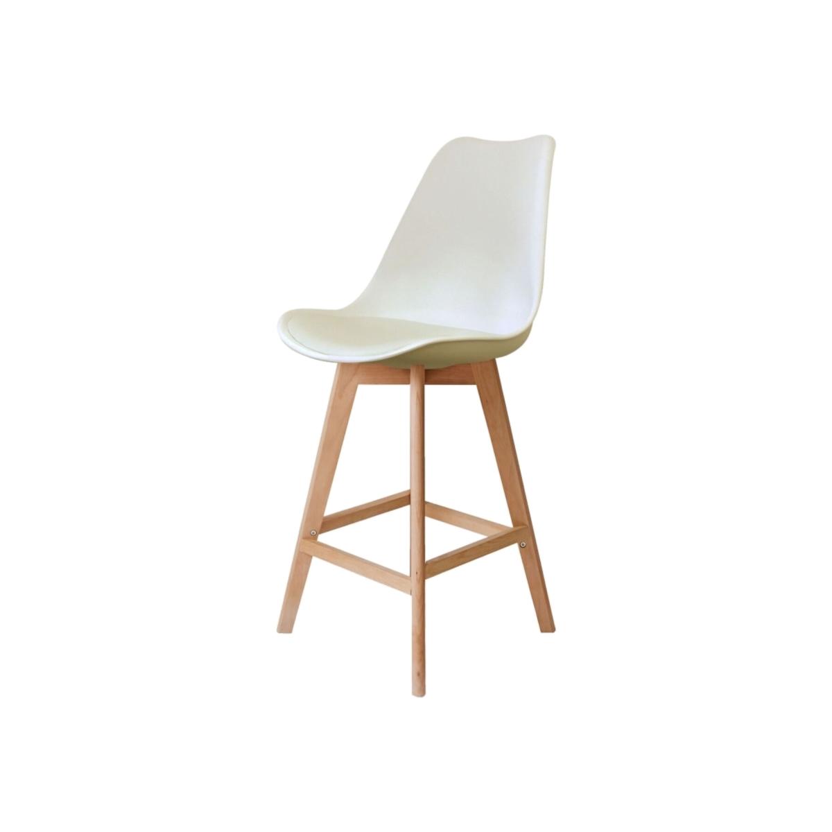 This Fusion Living Soho Plastic Bar Stool with Light Wood Legs is part of a collection of bar stools and dining chairs, inspired by contemporary designs. If you are thinking of long leisurely meals or for time spent reading at a kitchen counter, this bar stool will easily facilitate all of that and more. With its shaped seat and back plus soft seat pad, this bar stool ensures that added comfort and with its four, squared, natural beech wood legs, this bar stool not only looks the part but is so sturdy too. The seat pad is so easy to wipe clean - this item is a perfect match for any contemporary home or commercial setting, this innovative design guarantees that this piece will enhance any room.