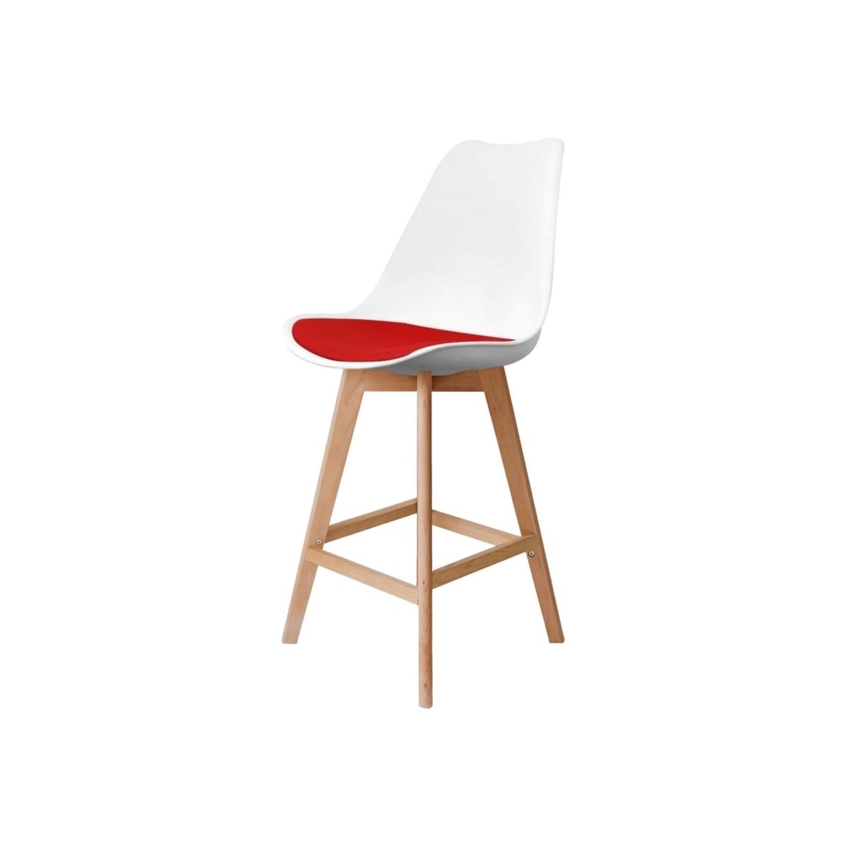 I love this bar stool for its combination of modern minimalism and playful colour pop. The red seat adds vibrancy and energy, making it perfect for contemporary kitchens or breakfast bars aiming for a lively, inviting vibe. The light wood legs offer a soft natural touch that balances the bold upholstery, making it versatile enough to work in Scandi-inspired, eclectic, or even industrial schemes when paired with the right accessories. Practical styling tips include keeping the surrounding counter and cabinetry neutral to let the stool stand out, or mixing red with other colourful accents for a fun, cohesive look. It’s a stylish piece that’s both functional and a real statement in the right setting.