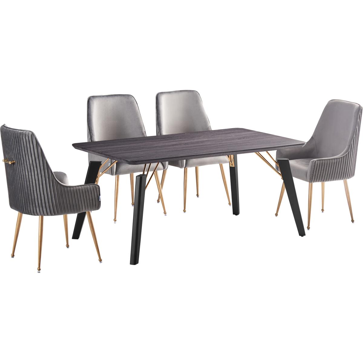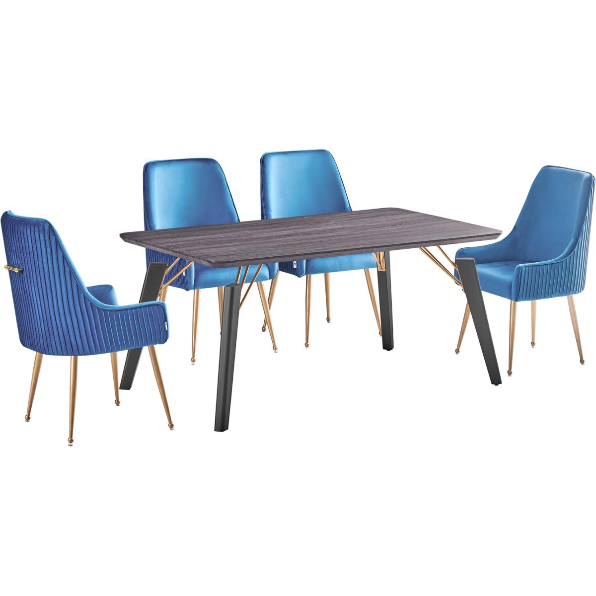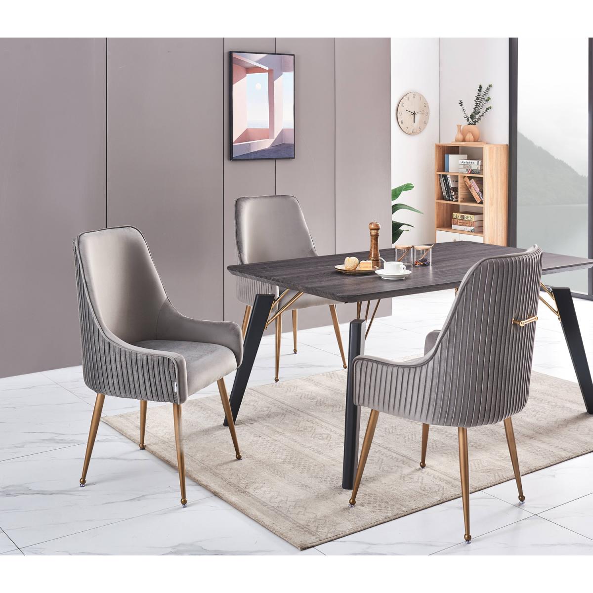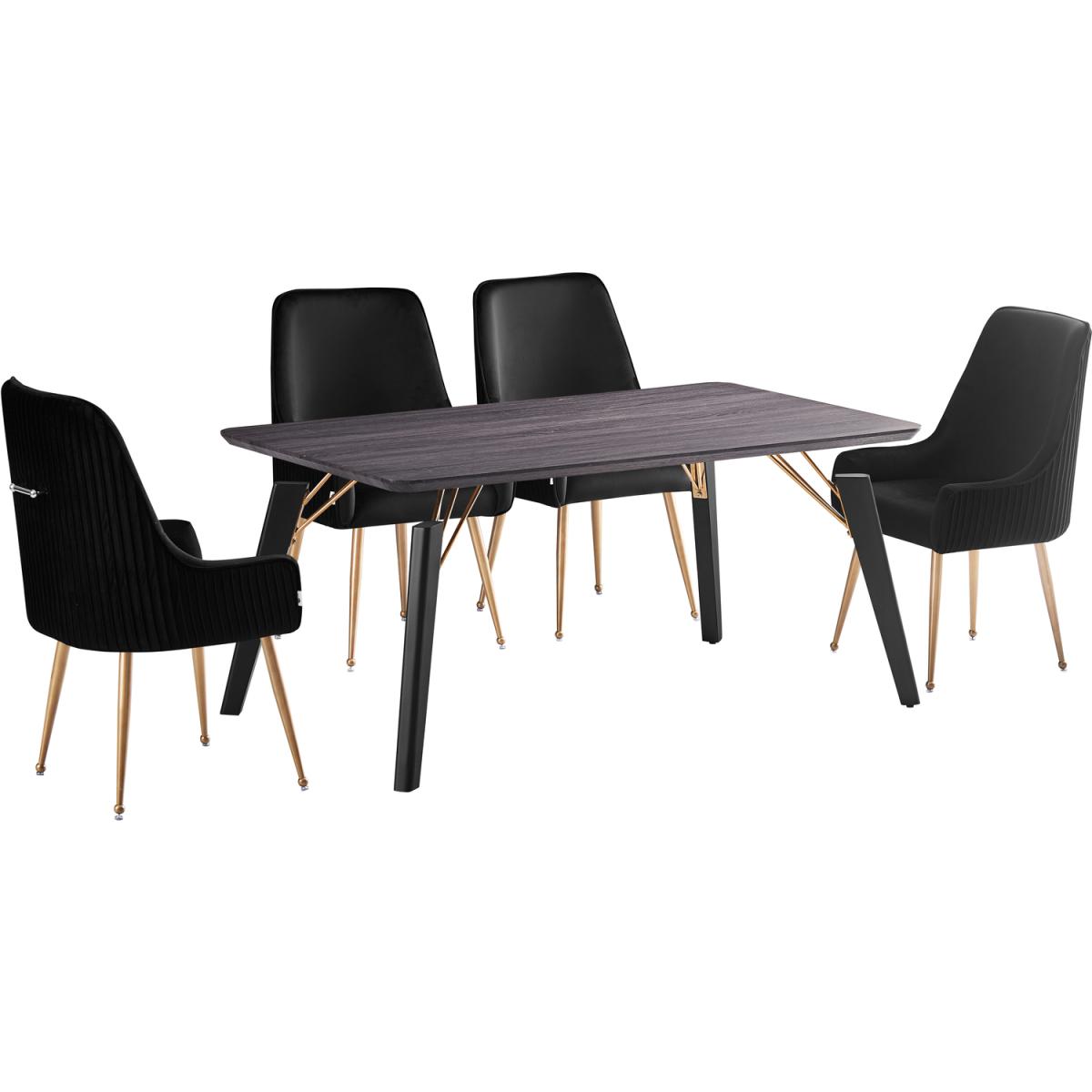 Introducing the dining set that includes the cosmo dinette Table featuring precision and a luxury finish to deliver an amazing dining experience. The sleek design of this table is giving it both functionality and a modern look with a touch of a rustic home feel. The wooden top gives it a warm rustic feel while the black metal legs with a gold chrome frame bring the modern feel. The table comes with Soho kitchen chairs that evoke notions of grandeur and sophistication. Wonderfully upholstered with a premium quality plush velvet to meet expectations, we have had to go into high levels of detail to secure this look with a modern twist. While adorned with a contemporary gold finished handle with contrasting brushed brass metal legs. Featuring a modern curved back with armrests and a well-padded seat, supported by four sturdy metal legs that have floor protectors to protect your floor from scratching. This dining chair is so ergonomic and provides your low back and spine enough support for a long-term relaxation. These chairs will help add a dose of sophistication to any interior. Sloping armrests, gold accents, decorative pull ring, and pleated back.