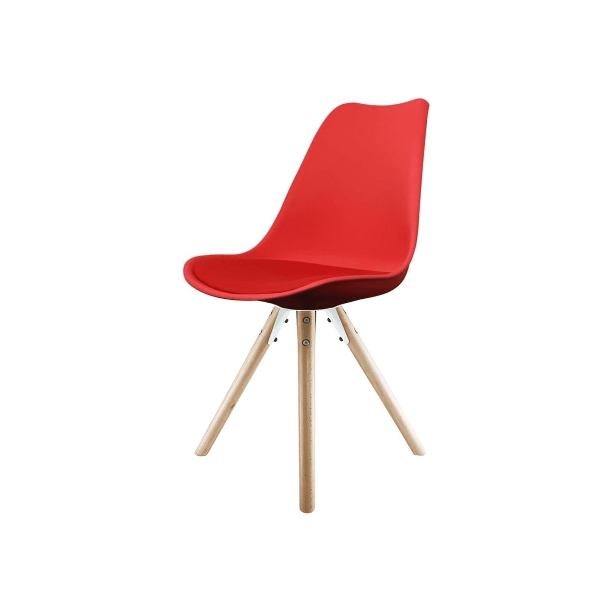 This Fusion Living Soho Plastic Dining Chair with Pyramid Light Wood Legs is part of a collection of side dining chairs, based on contemporary designs. With its light wood legs, this chair not only looks the part but is so sturdy too. If you are thinking of long leisurely meals or for time spent reading at a desk, this chair will easily facilitate all of that and more with the shaped seat and back plus soft seat pad, which is so easy to wipe clean. Perfect in any contemporary home or commercial setting, this innovative design guarantees that this piece will enhance any room.