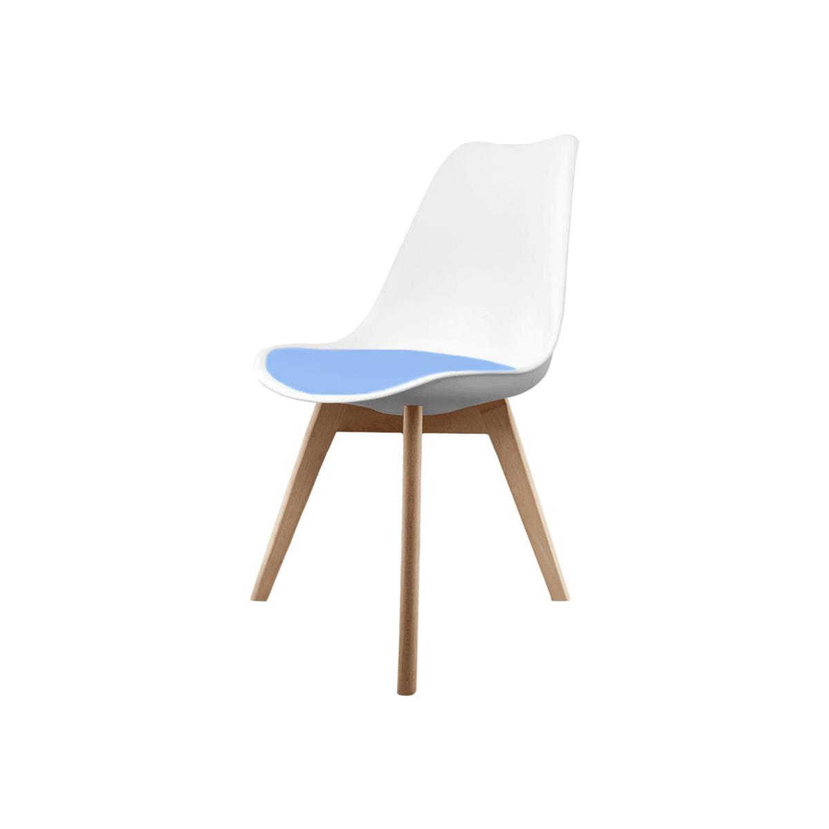I’m a big fan of this Soho-style chair for its clean lines and light-blue seat pop against the white shell and squared timber legs. It sits comfortably in Scandi, contemporary or minimalist schemes and works well around pale-wood or white-laminate tables. For easy styling, group them in odd numbers, pair with a neutral jute rug and simple tableware to let the chair’s colour stand out, and keep surrounding décor pared back so the form and hue aren’t competing with busy patterns.