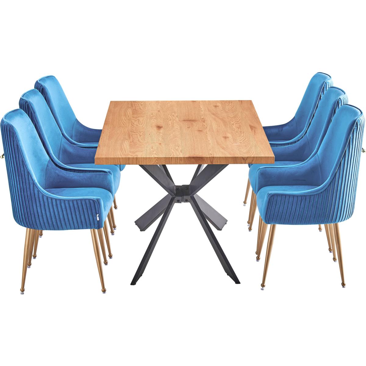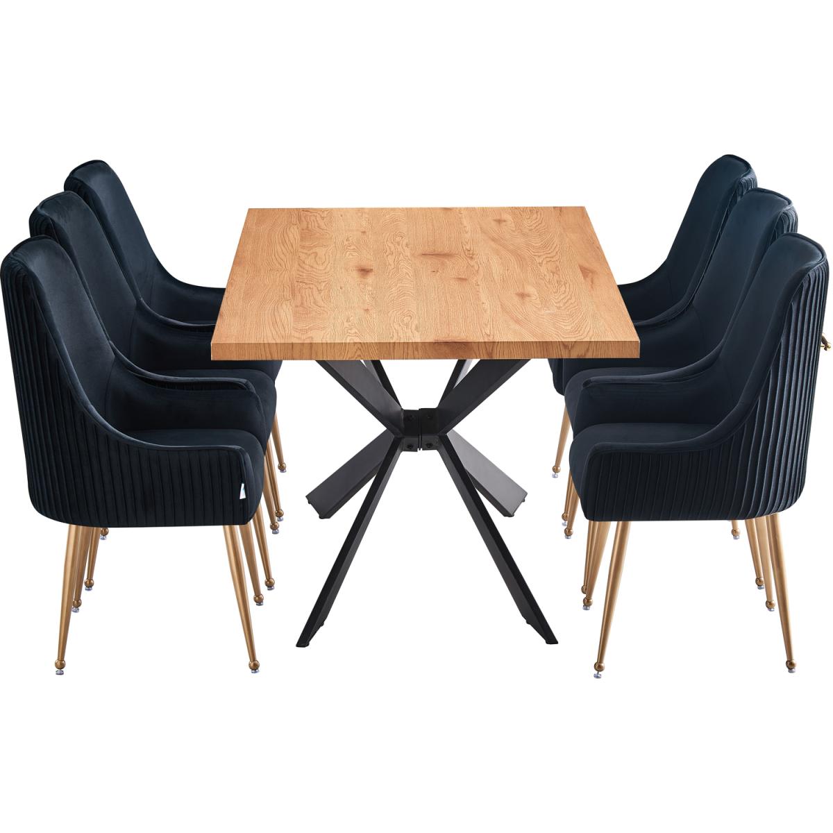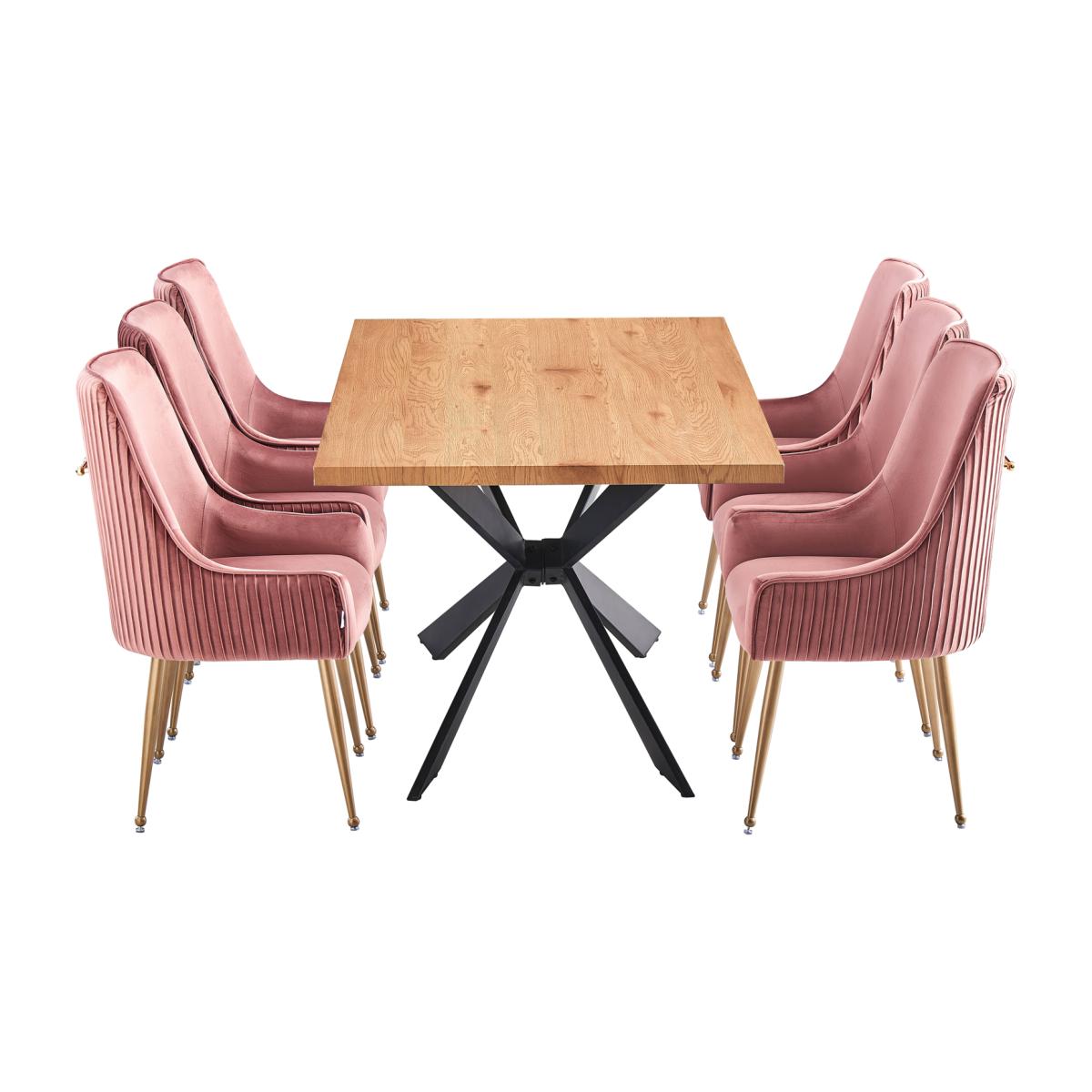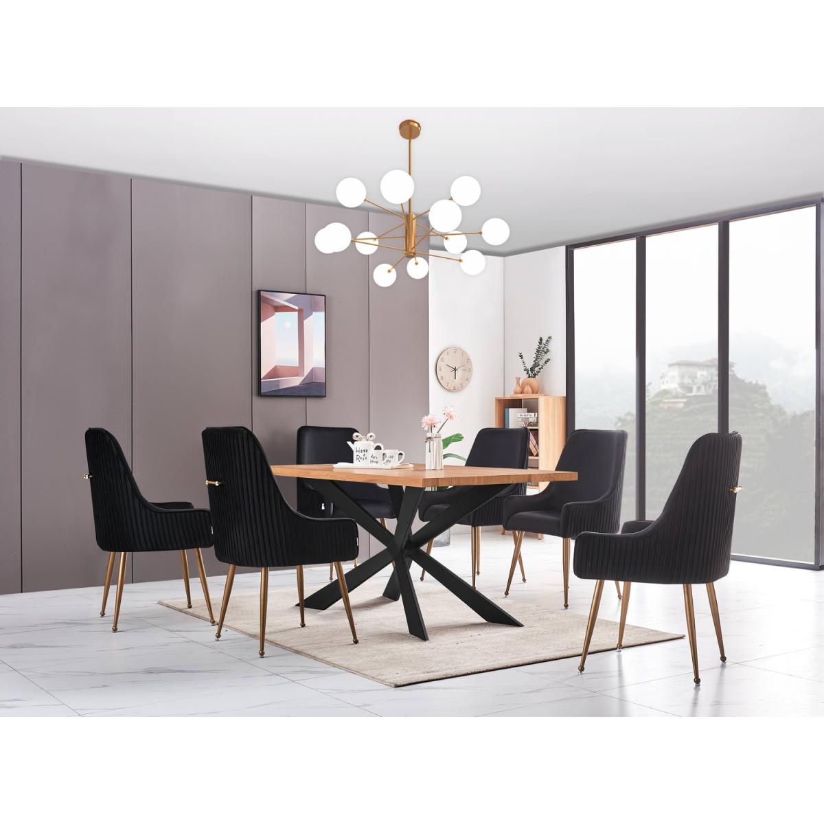 Introducing the dining set that includes the dinette Table featuring a simplistic and versatile design with a twist! It has been designed with precision and a luxury finish to deliver an amazing dining experience. The striking metal base with a cross design demands attention all eyes on me. The legs feature floor protectors to avoid scratching your floors. Its luxury yet simple design will elevate your dining space to a new level. The table comes with Soho kitchen chairs that evoke notions of grandeur and sophistication. Wonderfully upholstered with a premium quality plush velvet to meet expectations, we have had to go into high levels of detail to secure this look with a modern twist. While adorned with a contemporary gold finished handle with contrasting brushed brass metal legs. Featuring a modern curved back with armrests and a well-padded seat, supported by four sturdy metal legs that have floor protectors to protect your floor from scratching. This dining chair is so ergonomic and provides your low back and spine enough support for a long-term relaxation. These chairs will help add a dose of sophistication to any interior. Sloping armrests, gold accents, decorative pull ring, and pleated back.
