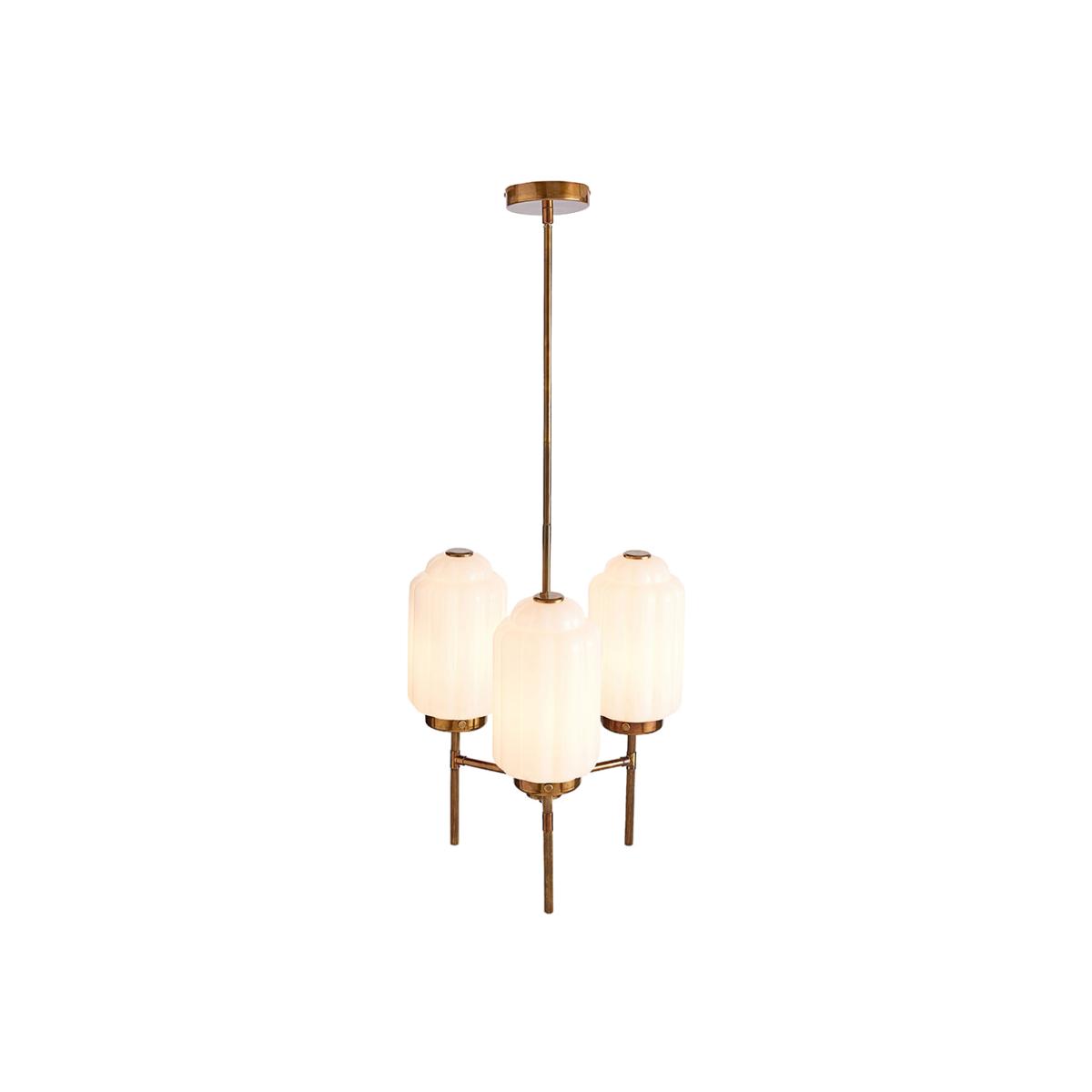 Bring some art deco style into your interior with this Valentina ceiling pendant from Soho Home. Inspired by Soho Warehouse in Downtown Los Angeles, it features an antique brass finish with three opaque glass shades. Key features: * Material: glass, metal * Dimensions: Ø43xH139cm * Adjustable rod: 100cm * Weight: 4.4kg * Bulb required: 3x 60W E27 (included) * Art Deco style * Antique brass finish * With 3 faceted opaque glass shades * Inspired by Soho Warehouse in Downtown LA * Clean with a soft dry cloth