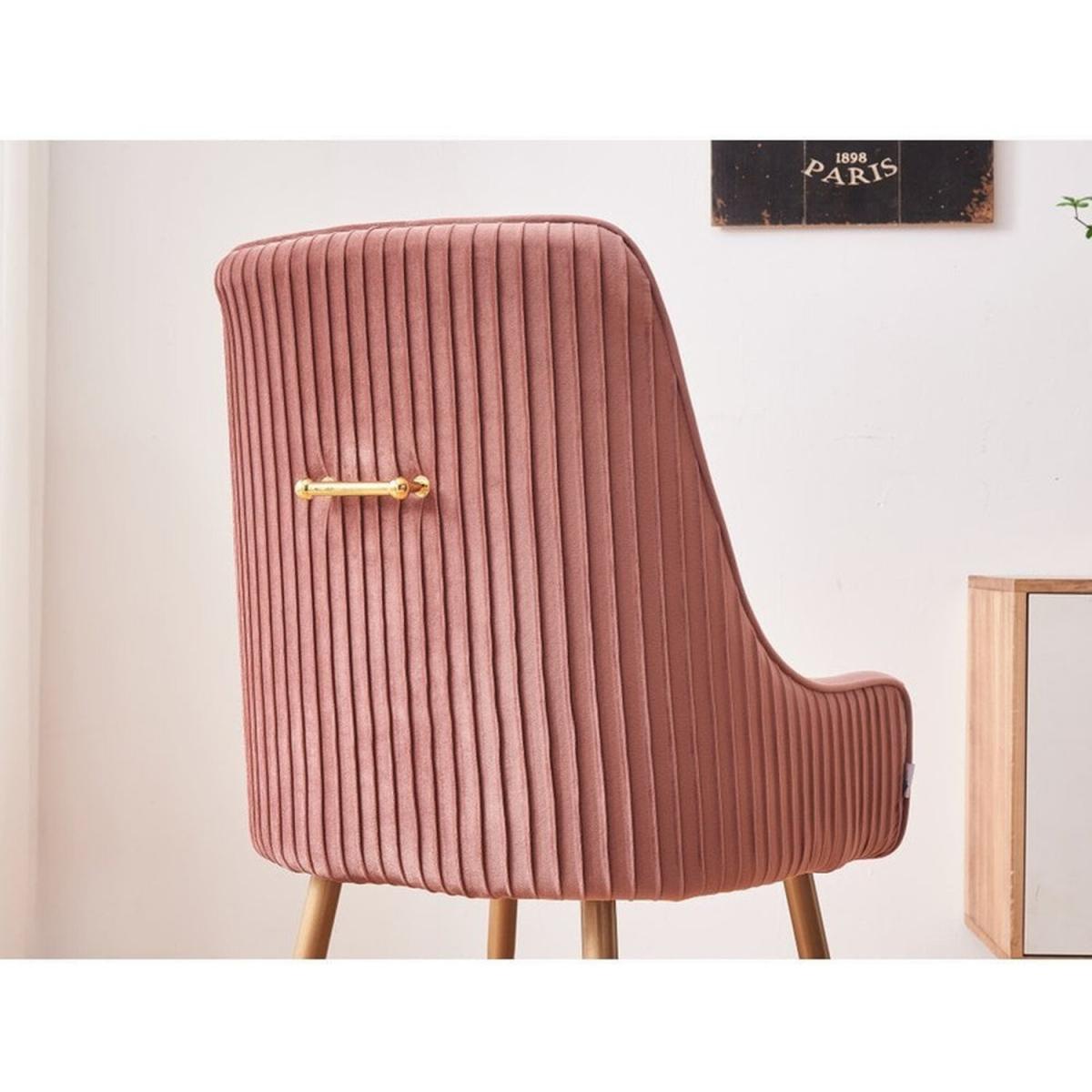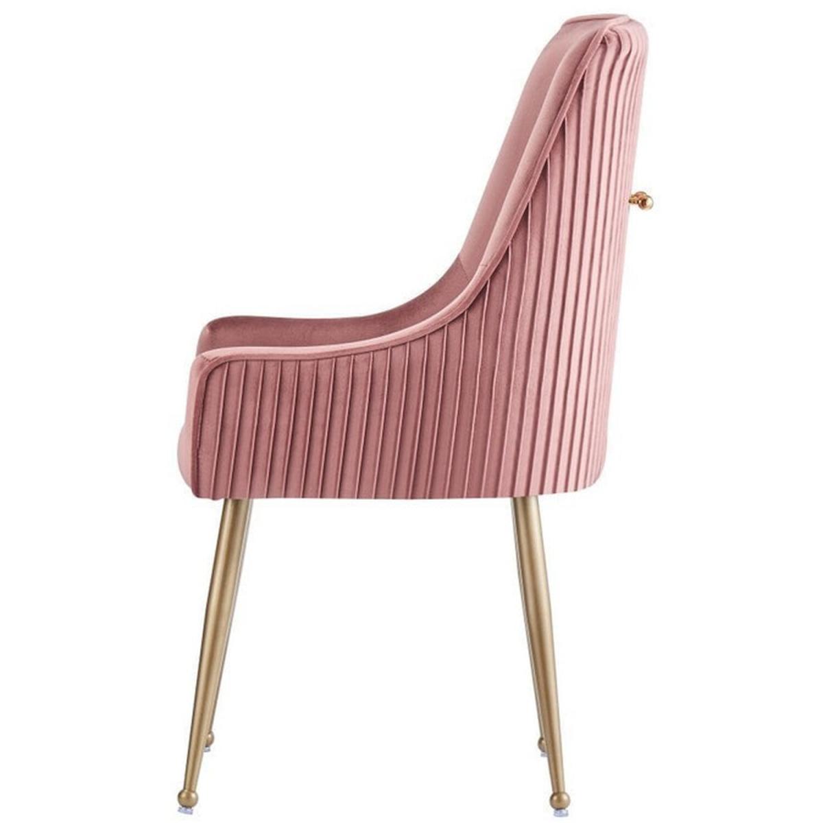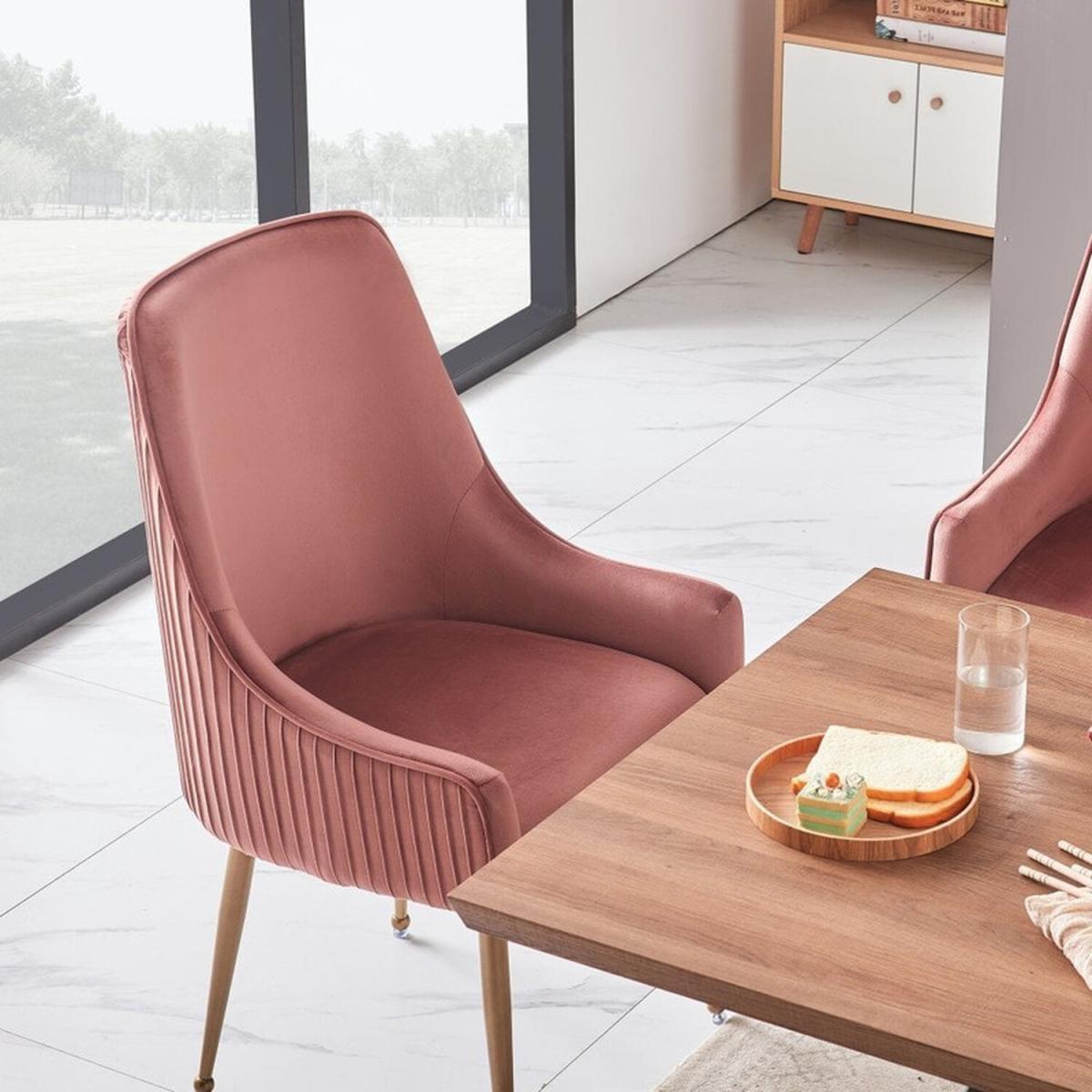 We are offering the Soho chairs that are the epitome of opulence and luxury. Wonderfully upholstered with a premium quality plush velvet to meet the expectations, we have had to go into high levels of detail to secure this look with a modern twist. While adorned with a contemporary gold finished handle with contrasting brushed brass metal legs. The modern Chair is versatile enough and can be used as part of your Dining table, side chair for your favorite book reading time, and much more! Anywhere from Cafes, Restaurants, Dessert Shops, dining Rooms, living room, reception area, Hotel or as a dressing table chair in your bedroom, desk chair in your home office. Featuring a modern curved back with armrests and a well-padded seat, supported by four sturdy metal legs that have floor protectors to protect your floor from scratching and make this chair anti-slip, and anti-noise. This dining chair is so ergonomic and provides your low back and spine enough support for a long-term relaxation. Offers unique features such as Sloping armrests, gold accents, decorative pull ring, and pleated back that make it stand out from the crowd.