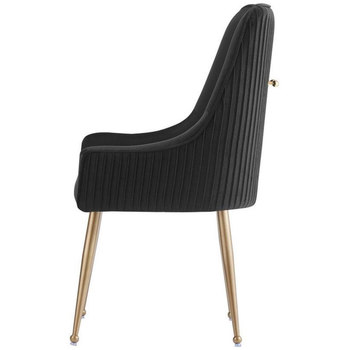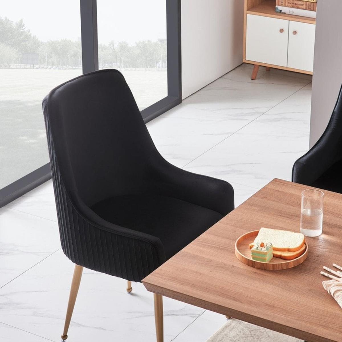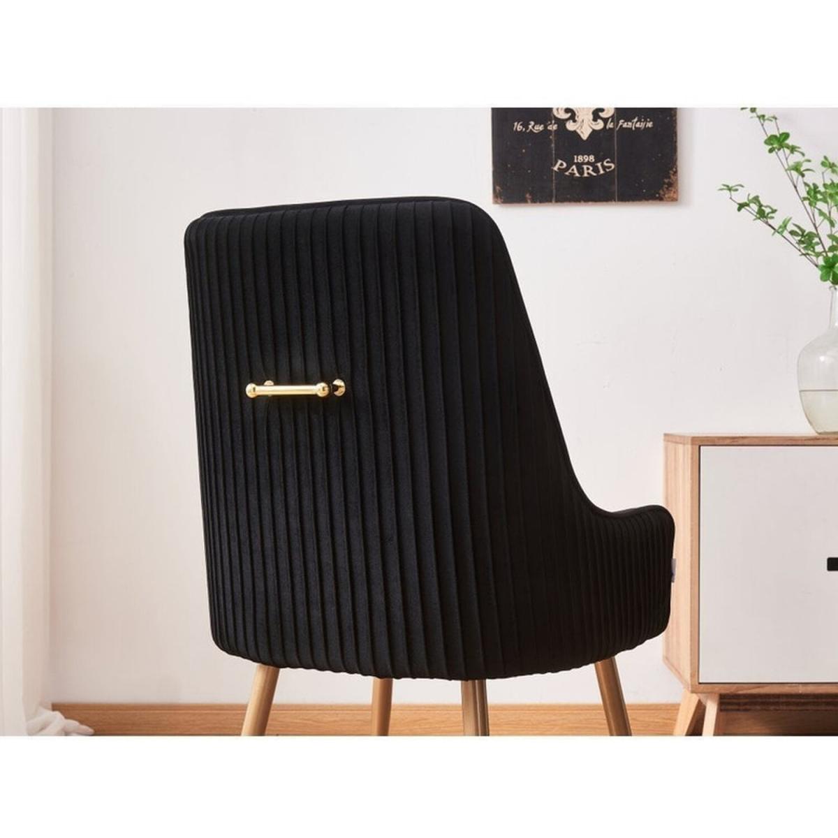We are offering the Soho chairs that are the epitome of opulence and luxury. Wonderfully upholstered with a premium quality plush velvet to meet the expectations, we have had to go into high levels of detail to secure this look with a modern twist. While adorned with a contemporary gold finished handle with contrasting brushed brass metal legs. The modern Chair is versatile enough and can be used as part of your Dining table, side chair for your favorite book reading time, and much more! Anywhere from Cafes, Restaurants, Dessert Shops, dining Rooms, living room, reception area, Hotel or as a dressing table chair in your bedroom, desk chair in your home office. Featuring a modern curved back with armrests and a well-padded seat, supported by four sturdy metal legs that have floor protectors to protect your floor from scratching and make this chair anti-slip, and anti-noise. This dining chair is so ergonomic and provides your low back and spine enough support for a long-term relaxation. Offers unique features such as Sloping armrests, gold accents, decorative pull ring, and pleated back that make it stand out from the crowd.