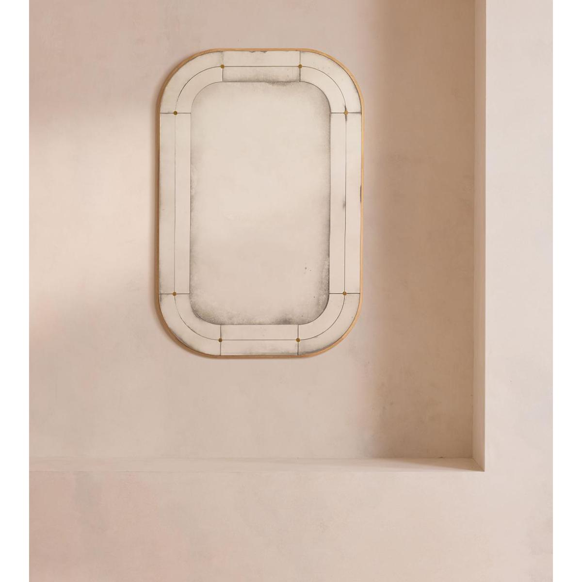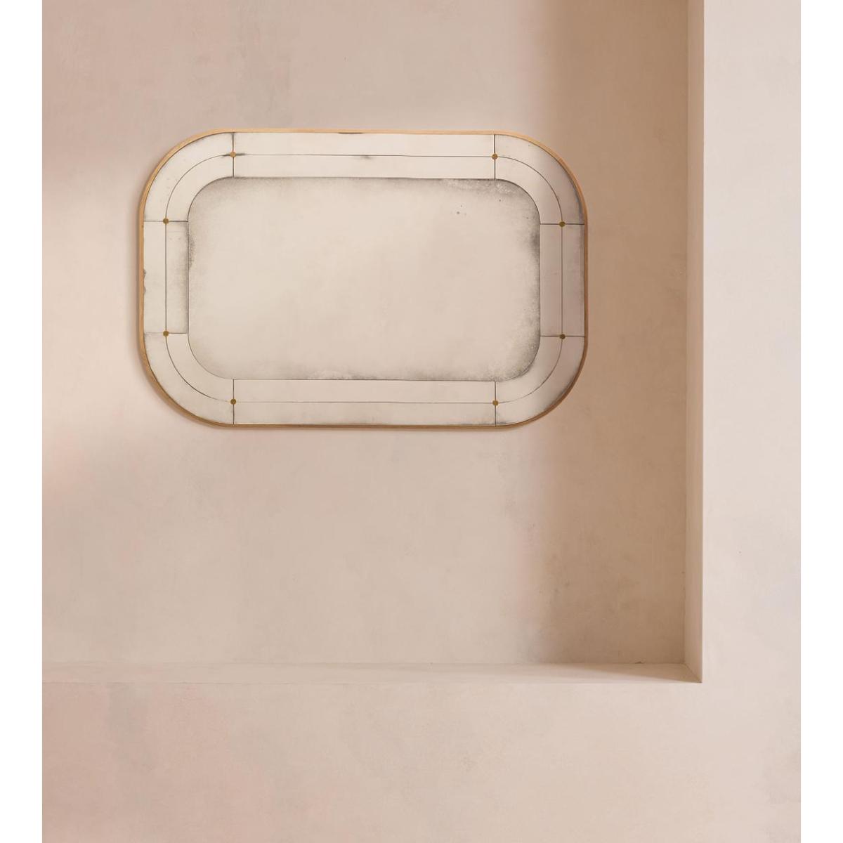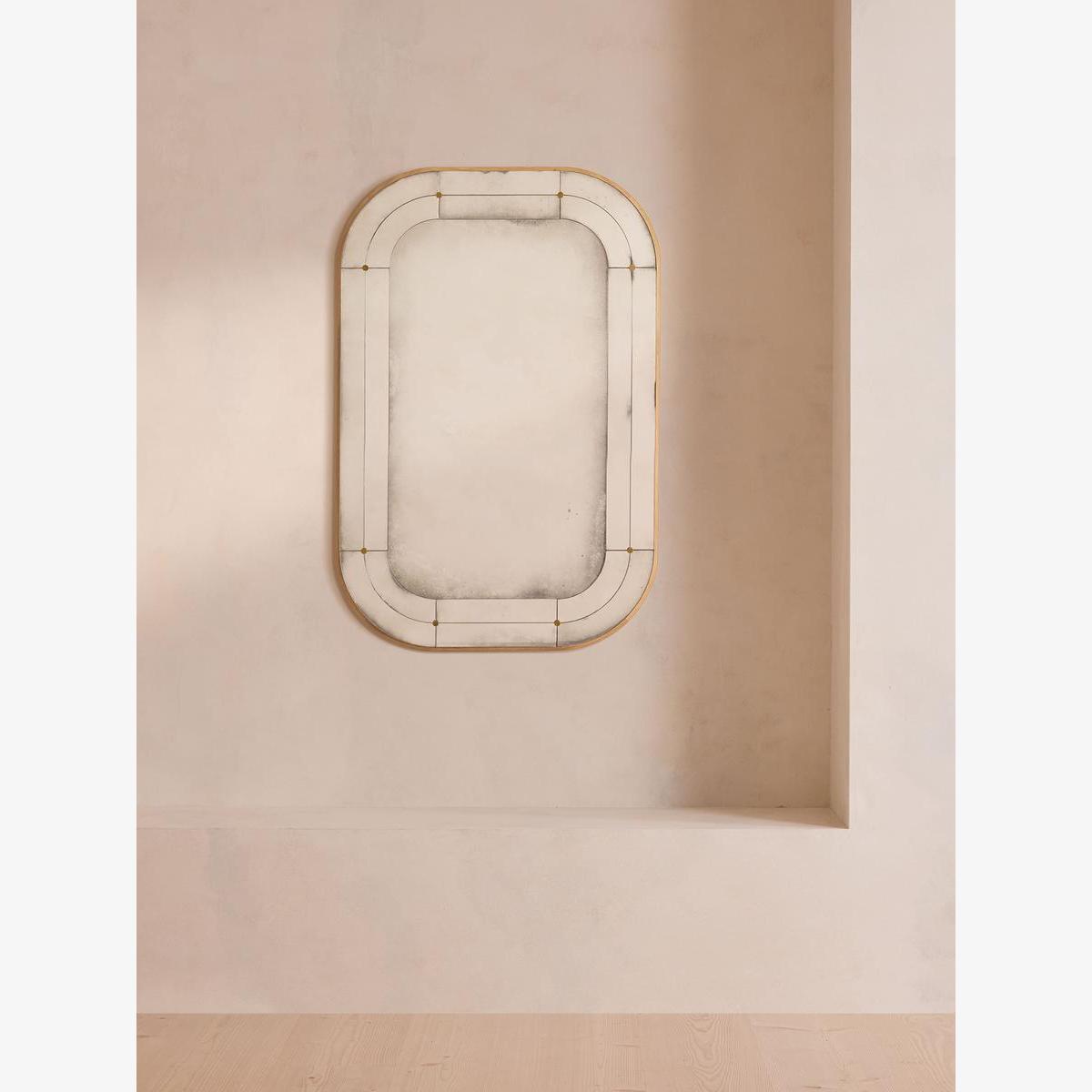 Crafted in Rupert Bevan's Shropshire workshops, this mirror features lightly antiqued glass panels set within a fumed oak frame. Patinated brass studs add detail to the design, highlighting the precision and finish of the piece. The mirror's subtly aged appearance is achieved using traditional hand-silvering techniques, an artisanal process carried out in one of the UK's few remaining glass workshops. A design by Rupert Bevan exclusively for Soho Home.