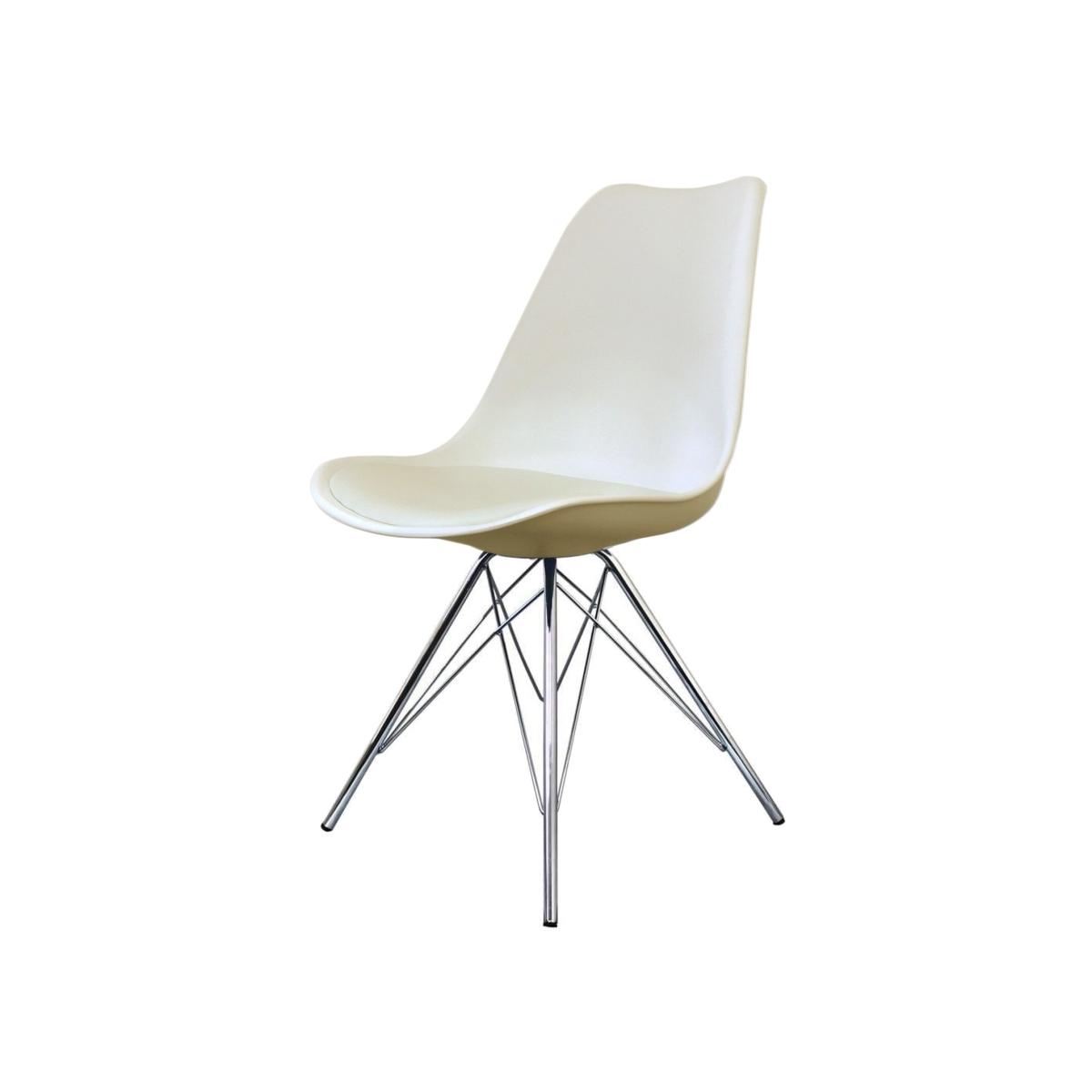 This Fusion Living Soho Plastic Dining Chair with Chrome Metal Legs. The cushion seat pad will screw on and off so easily. This piece manages to combine both style and comfort, with its chrome metal legs and moulded, plastic seat with cushion pad. Built to last, these chairs are perfect for home dining, or in a restaurant or workspace.