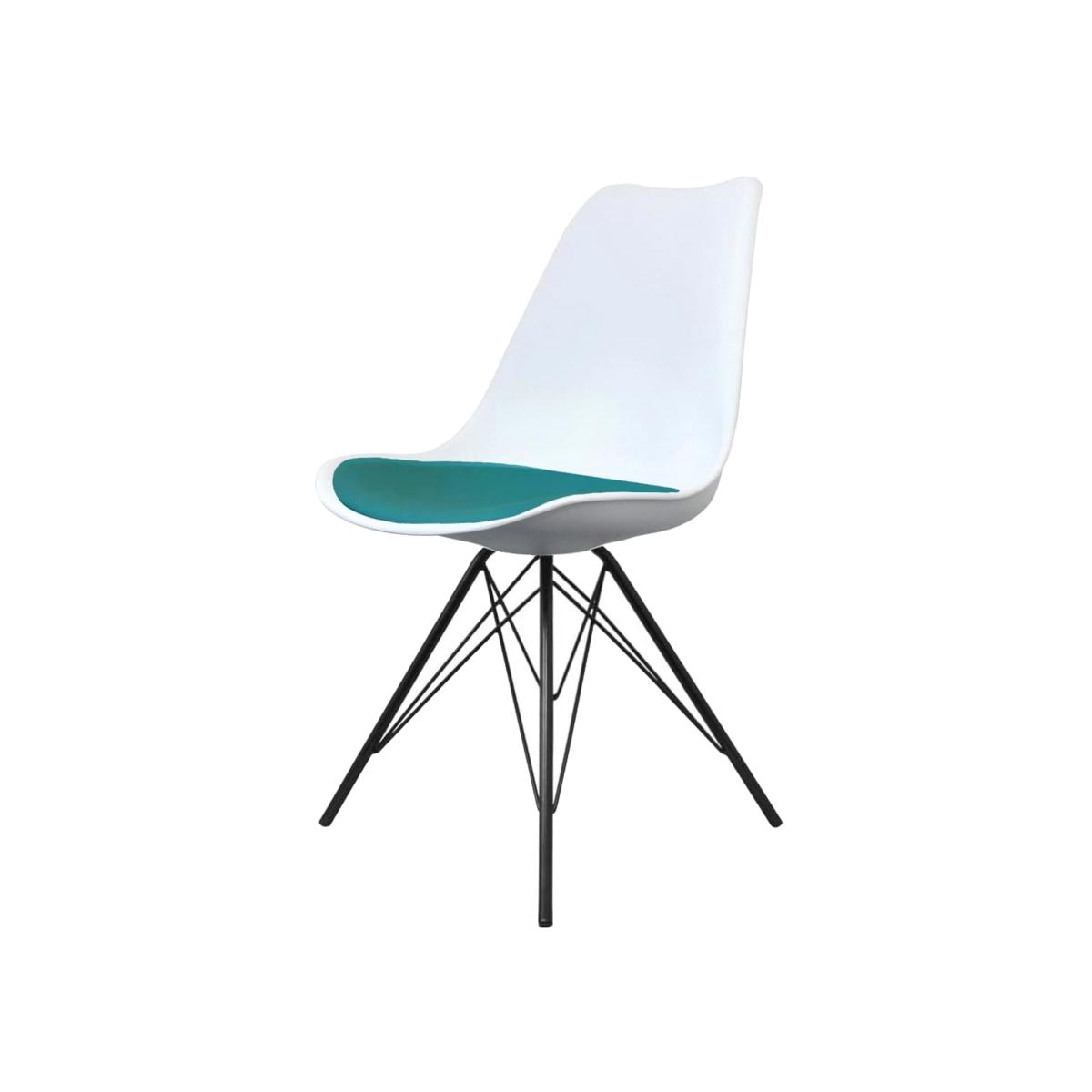 This Fusion Living Soho Plastic Dining Chair with Black Metal Legs is part of of a vibrant new dining chair collection. With its black legs and moulded, plastic seat with easy to clean cushion pad, this piece manages to combine both style and comfort. These chairs are built to last and and are ideal for home dining, in a restaurant or workspace.