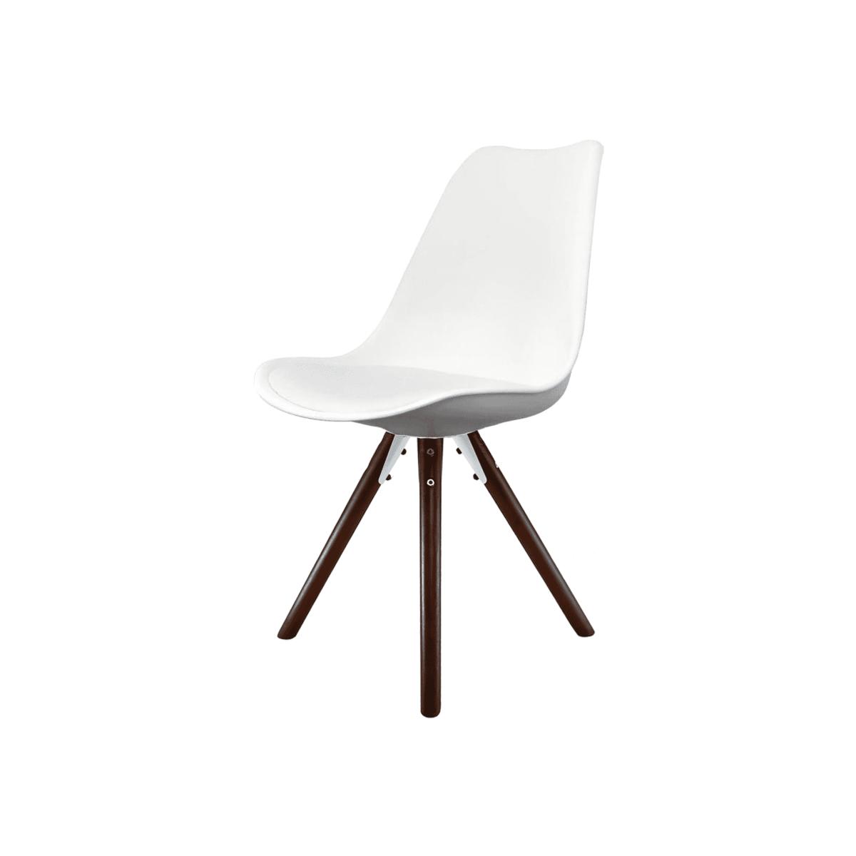 Soho Plastic Dining Chair with Pyramid Dark Wood Legs - White