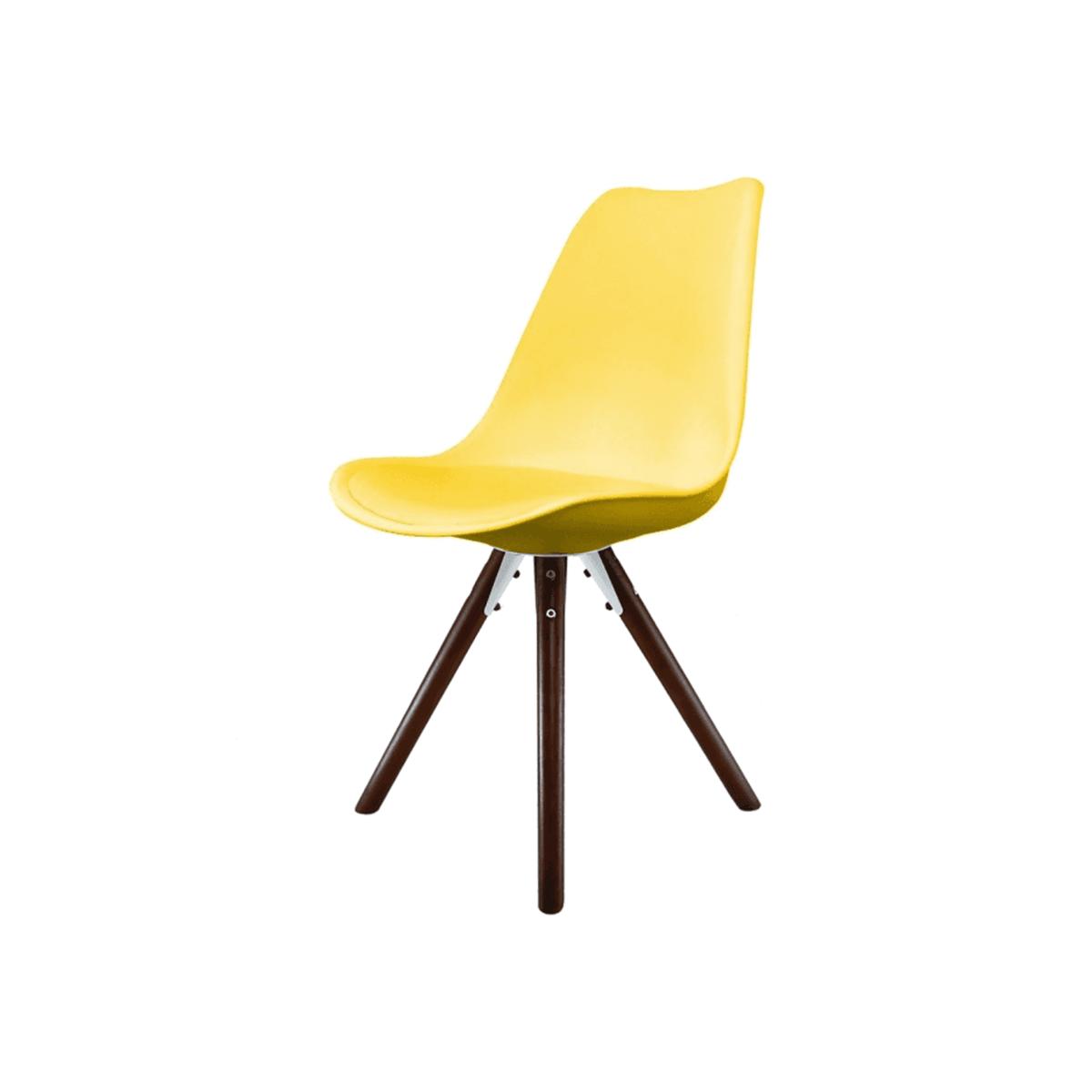 This Fusion Living Soho Plastic Dining Chair with Pyramid Dark Wood Legs is part of a collection of side dining chairs, based on contemporary designs. With its dark wood legs, this chair not only looks the part but is so sturdy too. If you are thinking of long leisurely meals or for time spent reading at a desk, this chair will easily facilitate all of that and more with the shaped seat and back plus soft seat pad, which is so easy to wipe clean. Perfect in any contemporary home or commercial setting, this innovative design guarantees that this piece will enhance any room.