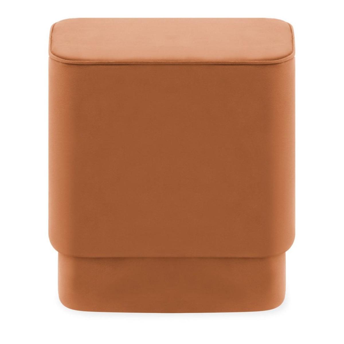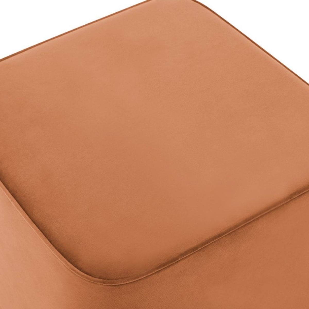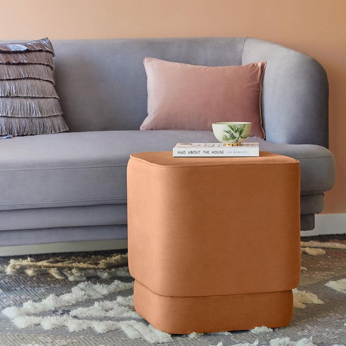 I really love this pouffe for its bold burnt orange velvet finish - it immediately adds warmth and a pop of colour to both modern and eclectic interiors. It's a versatile piece, working well as a footrest, extra seating, or even as a statement side table when paired with a tray. I recommend styling it in neutral-toned living rooms or bedrooms to let the colour stand out, but it can also bring vibrancy to more muted schemes. Practical tips include using it in smaller spaces to create flexibility in seating options or combining with layered textures for a cosy, inviting feel. Its compact size and luxurious fabric make it a stylish yet functional addition for many contemporary homes.