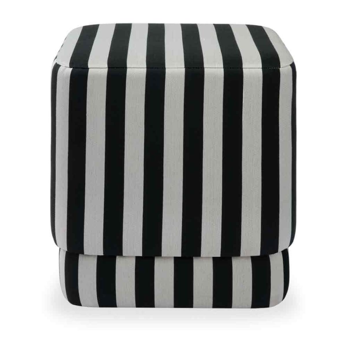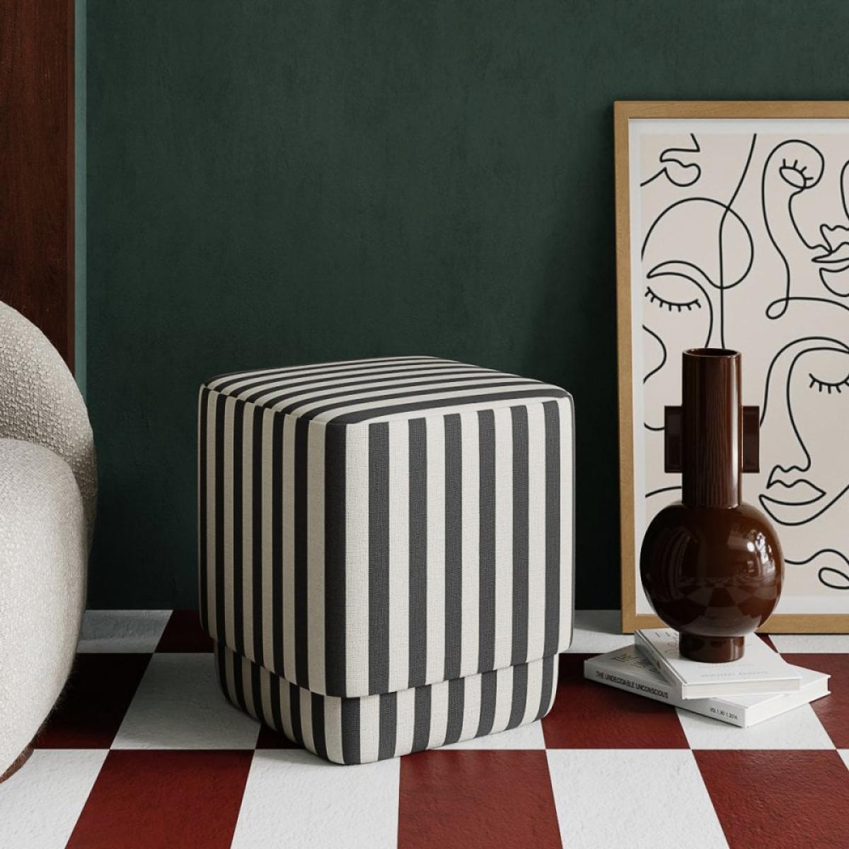 The Soho Pouffe has that classic black and white stripes to bring extra personality into your space instantly. The perfect accessory for both casual and formal living spaces, this versatile footrest or extra seat has a soft upholstery body in black and white with curved edges and an indented base.