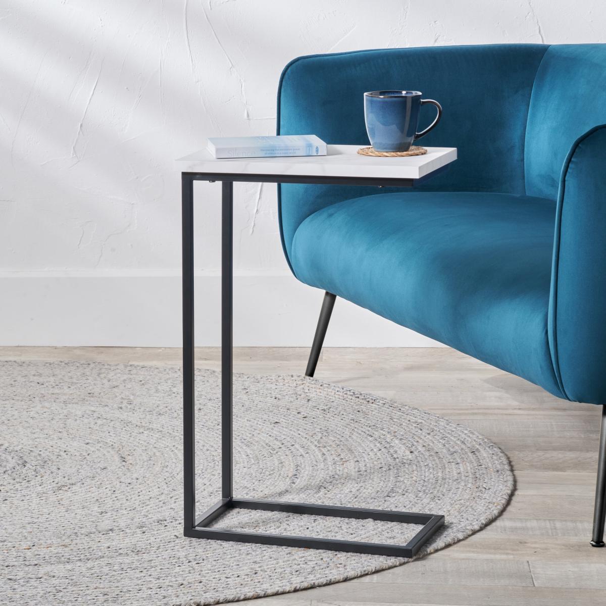 I love this side table because its sleek design and white marble top add a touch of sophistication to any space. It works particularly well in modern or minimalist interiors, but can also blend seamlessly with contemporary scandi or luxe styles. The clean lines and neutral colours make it versatile enough to pair with colourful sofas or neutral armchairs. For practical styling, try layering with a small tray for organising remotes or coasters, and add a statement vase or a stack of books to personalise the look. Its compact size makes it perfect for placing next to a sofa or armchair in living rooms or reading nooks, providing both functionality and style without overcrowding the space.