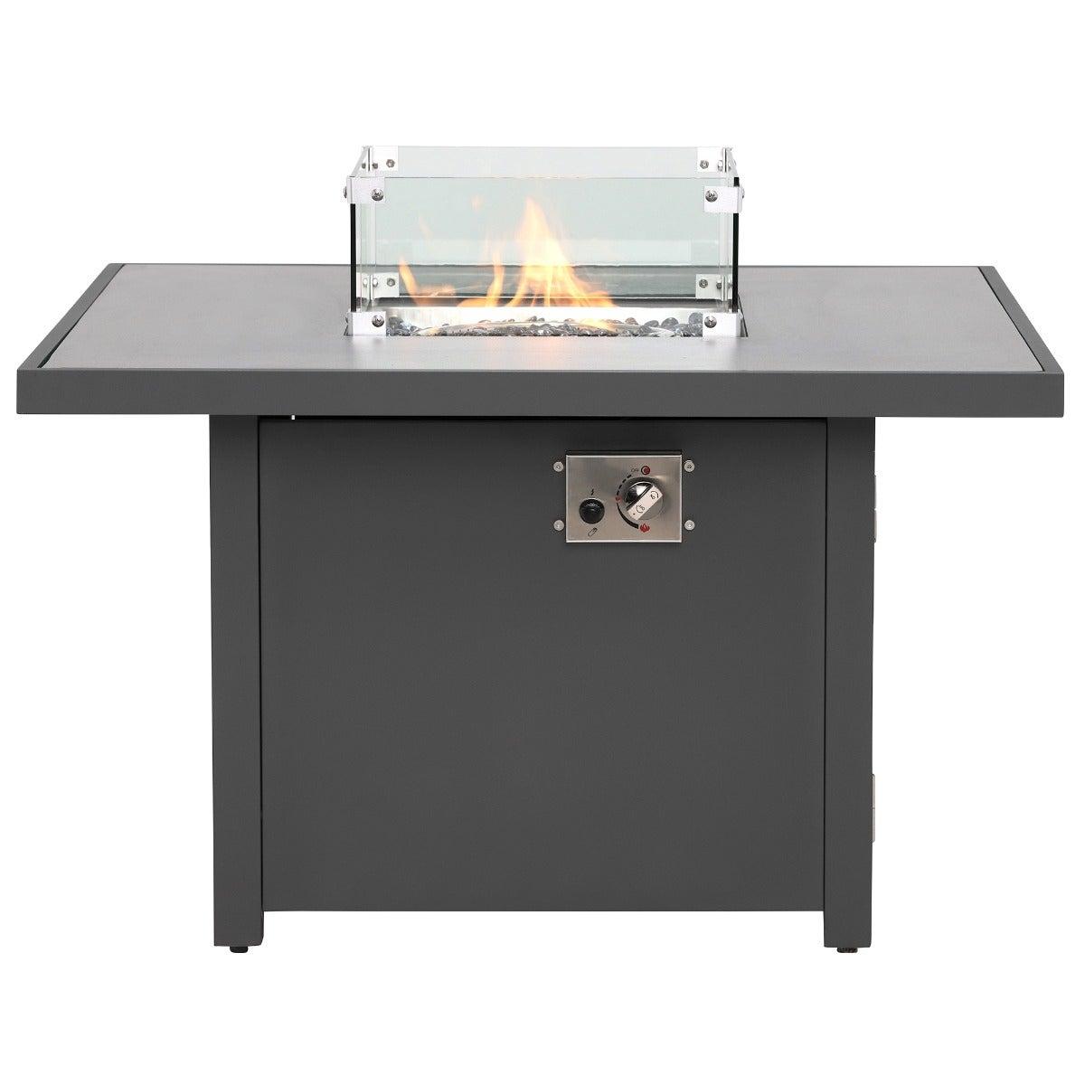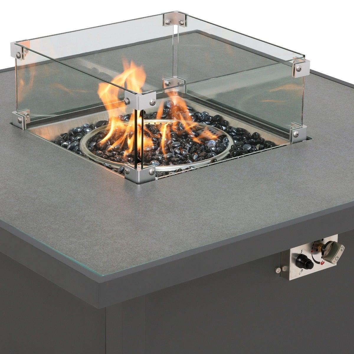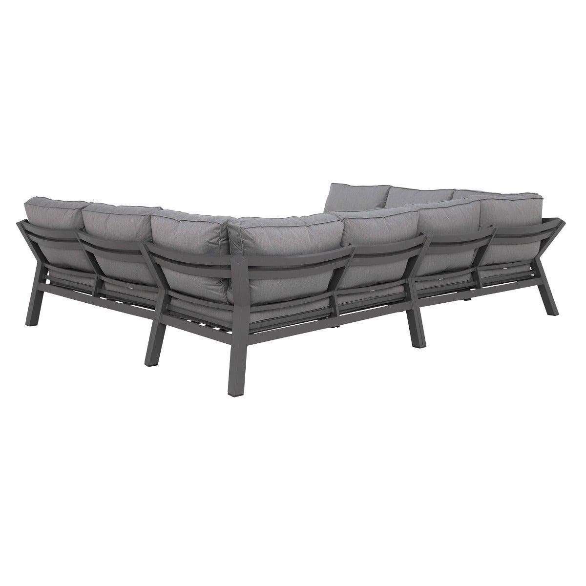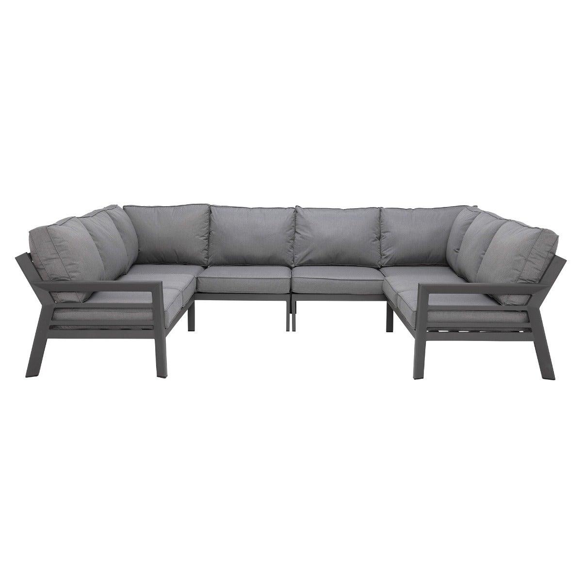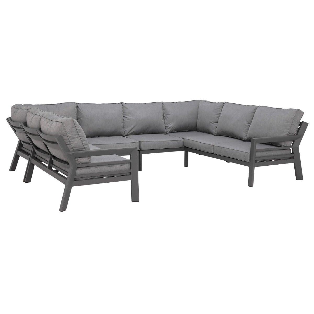 Design. Get that high end restaurant terrace feel in the comfort of your own back garden. With the Soho U-Shaped Sofa Set with Fire Pit, Grey. Masterfully crafted to suit any. Garden. Space,. The powder-coated. Aluminium. Frame is weather-resistant. And can stay. Outdoors. All year round. The table is complete with a stand-out feature of a fire pit, effortlessly creating a warming, cozy atmosphere when the night starts drawin. G in. The spacious U-Shaped sofa is perfectly finished with soft, supportive cushioning and will allow you. And all your guests to. Socialize. All night long.