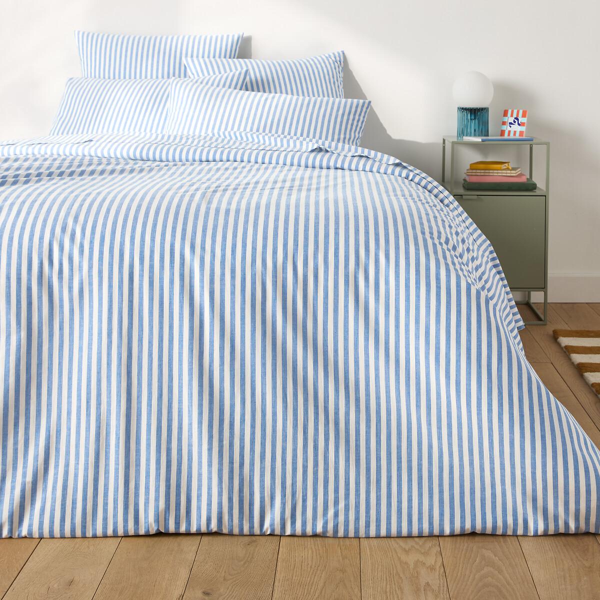 Stripes create a contrasting rhythm in a contemporary world that will brighten up your bedroom... Soizic, created by our designers at La Redoute Intérieurs, available in several colours and in pure woven-dyed cotton. Cotton is part of our daily lives. We love it for its suppleness and softness. Easy Care, it is ideal for the beds of young and old alike!Product Details • 100% cotton • 144 thread count • Dyed woven stripes on either side • Straight buttoned hem. As the seasons change, add your own personal touch by mixing the Soizic range with our range of plain Scenario bed linen. Care Advice • Machine washable at 60°C • By washing your laundry at 40°C instead of 60°C, you limit energy consumption. Dimensions • 140 x 200cm: Single • 200 x 200cm: Double • 240 x 220cm: King • 260 x 240cm: King • OEKO-TEX® Standard 100. Standard 100 certification by OEKO-TEX® tests textile products for harmful substances via an independent, international label.