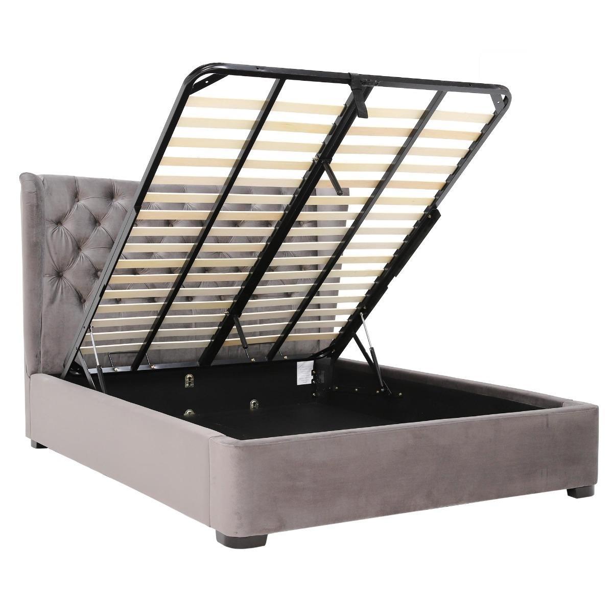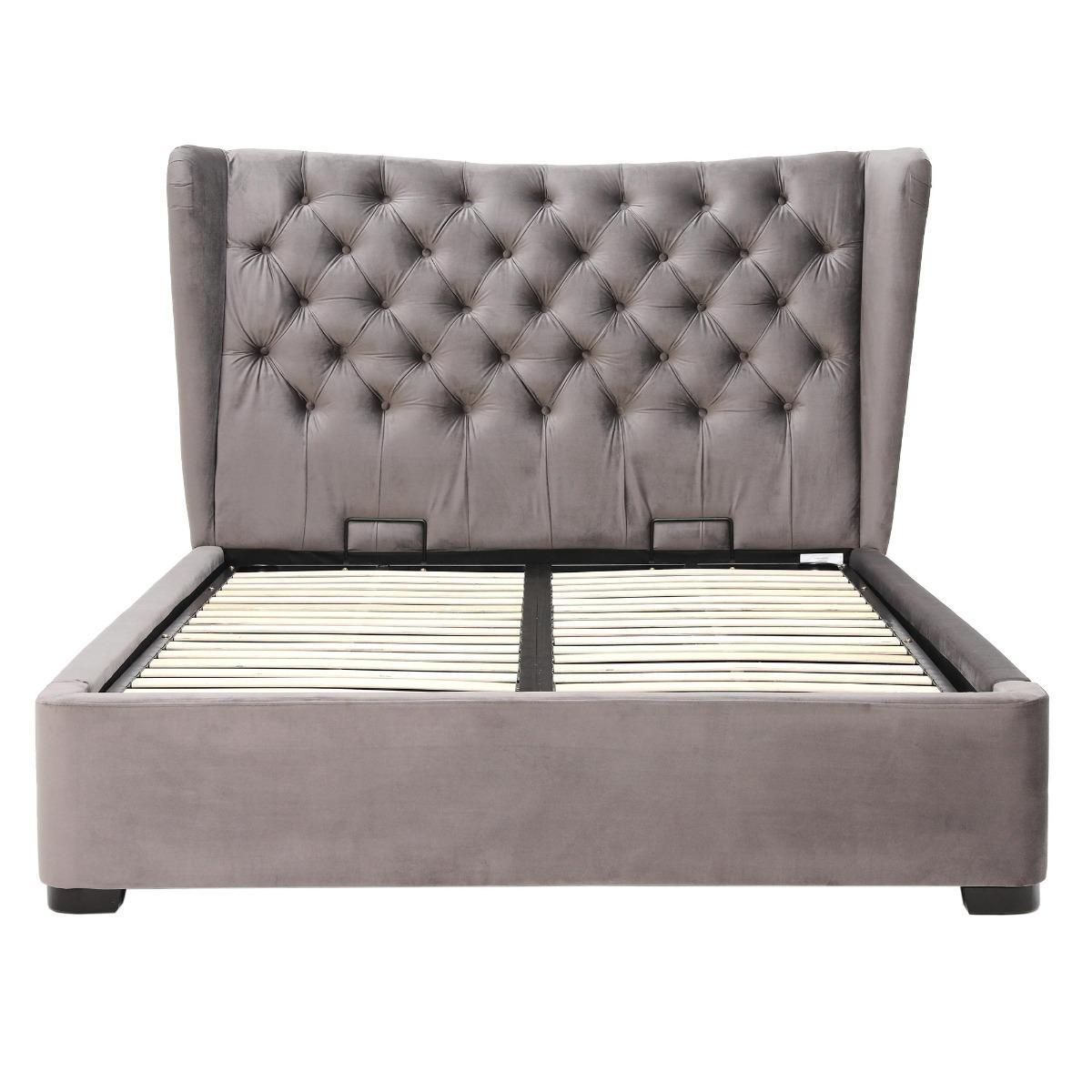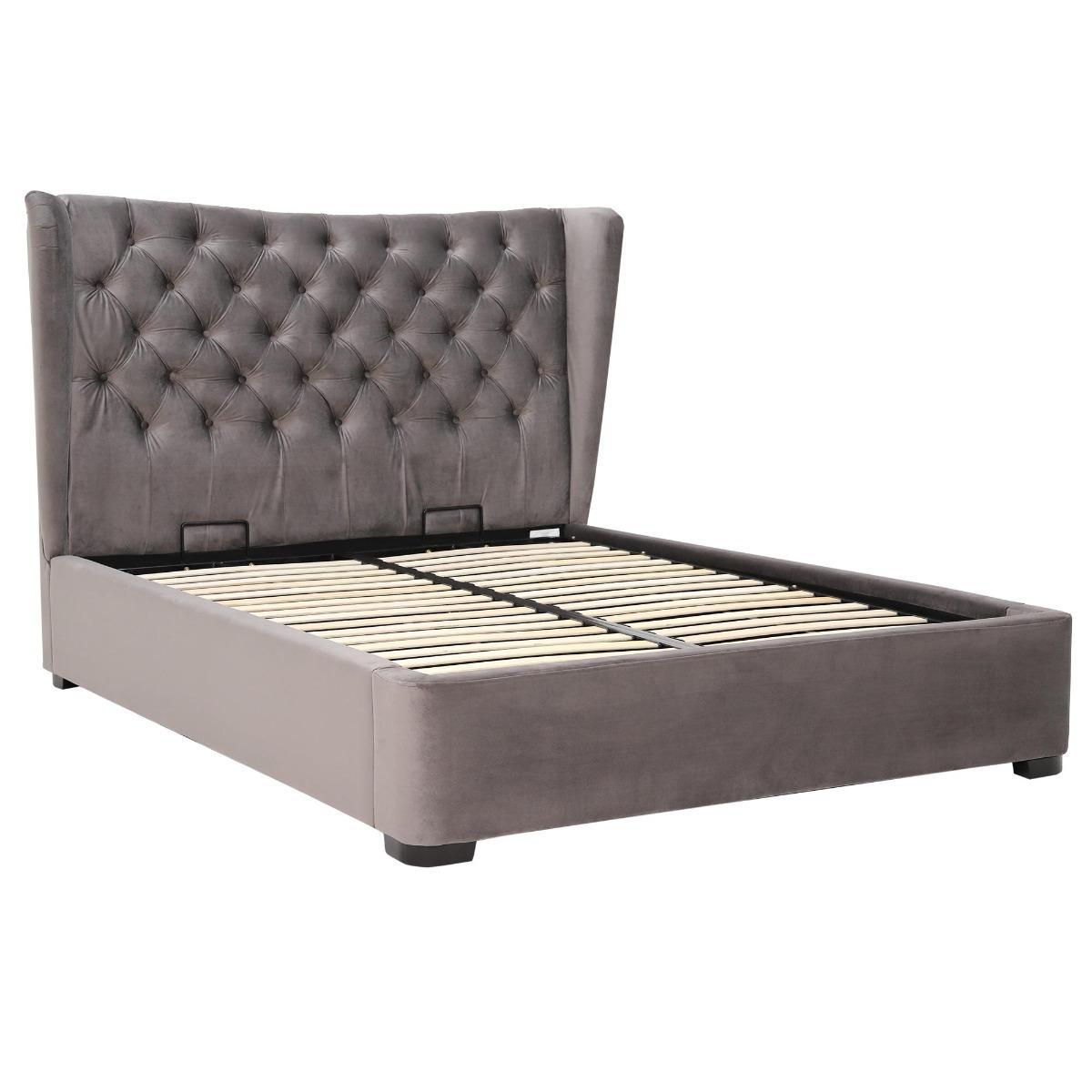 Design. The perfect combination of style and practicality the Sojourn ottoman bed frame creates a stunning statement in the bedroom. Featuring a beautiful winged and buttoned headboard, and finished inan opulent grey velvet, it brings elegance and enchantment to any sleeping space. Complete with a handy lift-up base, this beautiful bed frame provides hidden storage for spare bedding or clothes.