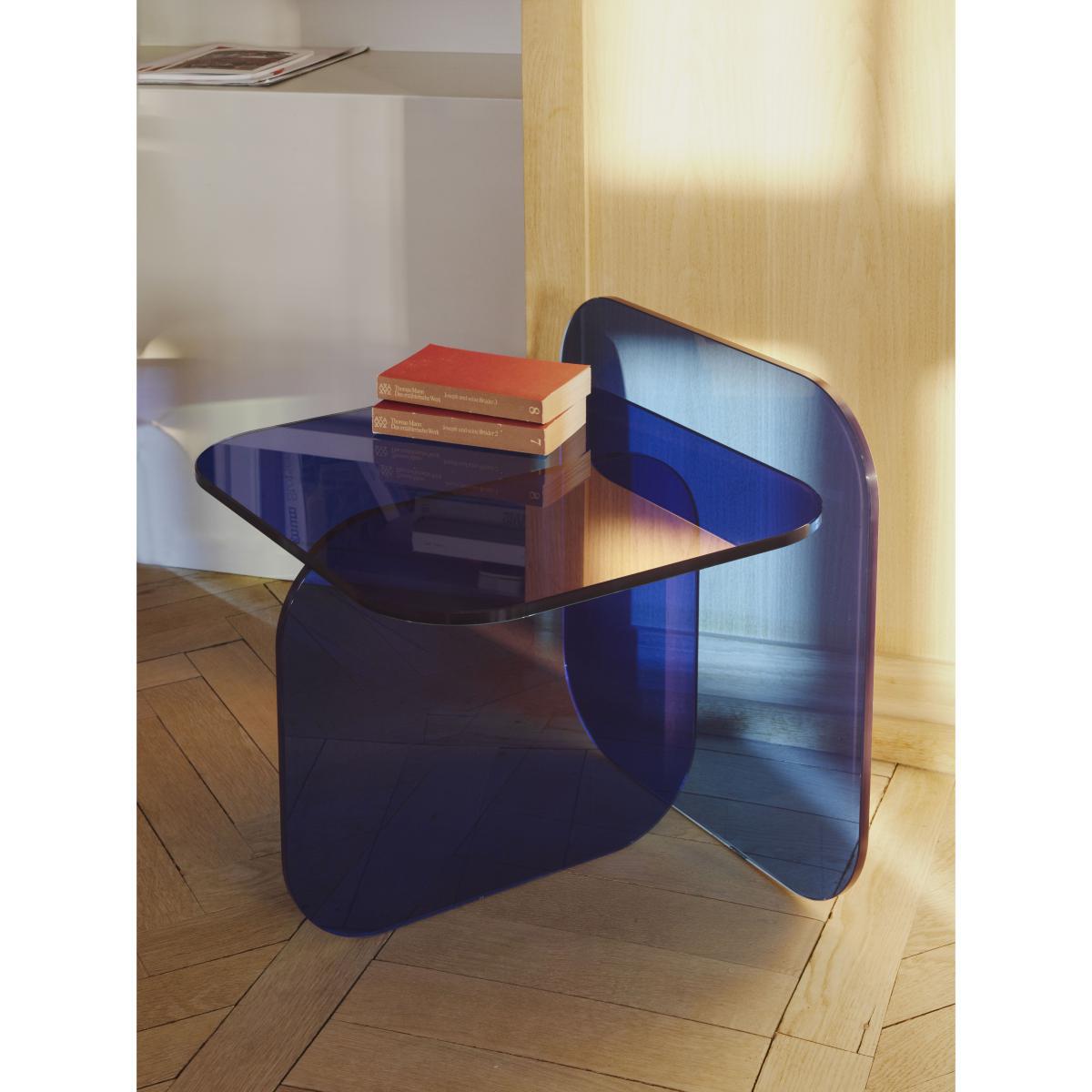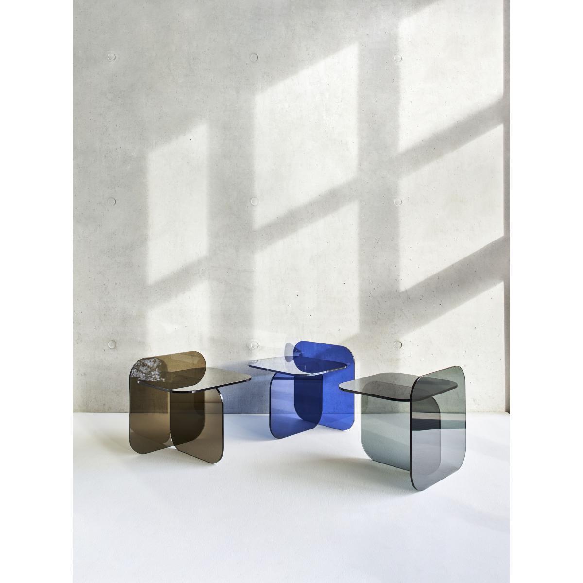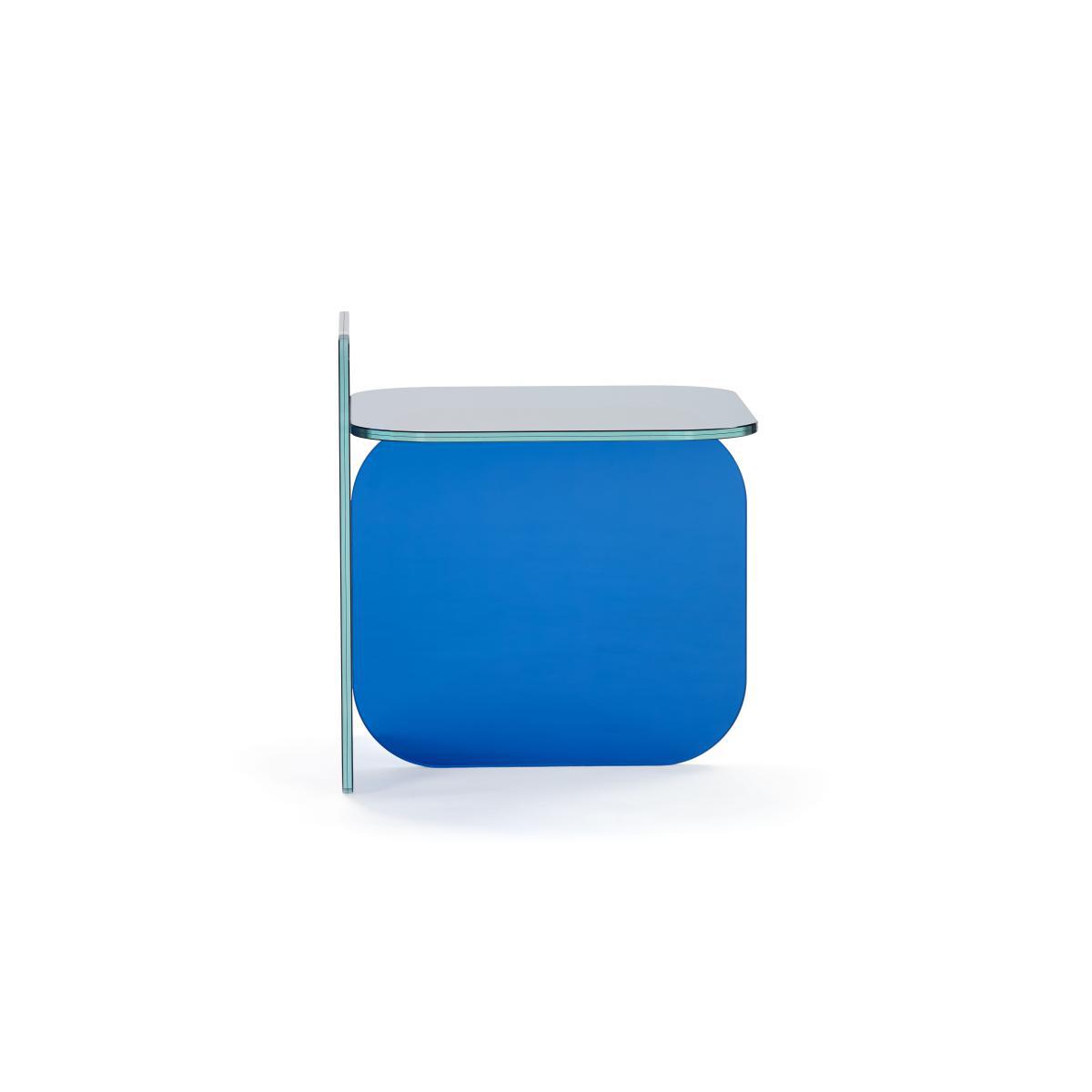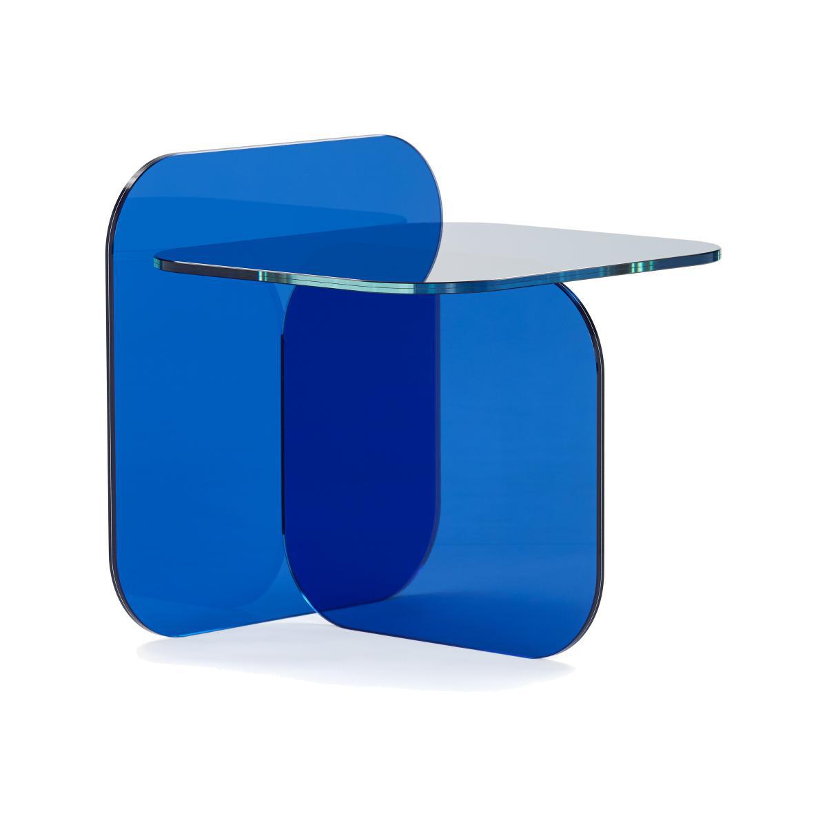 Sol plays with light and shadow, transparency and reflections, forming ever new silhouettes… Created by Spanish design duo Ortega-Guijarro, this sculptural side table offers a multi-faceted design. Made up of three glass panels of different sizes, the structure appears simple at first glance, but reveals its complexity on closer inspection. Depending on your perspective, the incidence of light and shadow, the colourful and transparent elements of the table blend into ever-changing silhouettes and visually deceive their observers. Depending on the angle of view, Sol transforms and evolves. An elegant sculpture or a functional side table? Sol is neither one nor the other, but both at the same time.