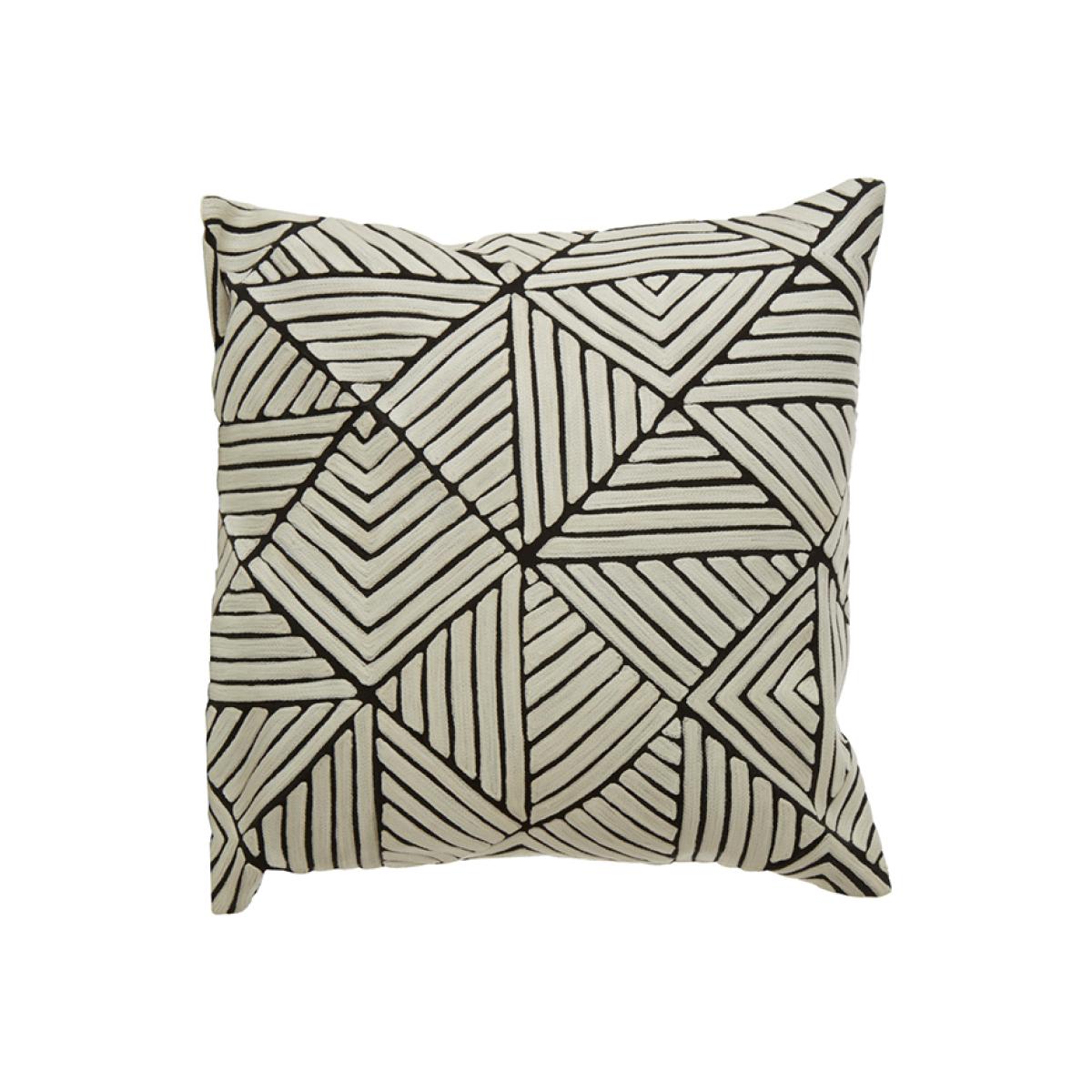 A minimalist approach to home accessories. Inspired by the striking simplicity of Sol Le. Witt’s Conceptual art, this soft cotton cushion is embroidered with a black geometric pattern to become a stylish accent in both contemporary and retro-inspired interiors.
