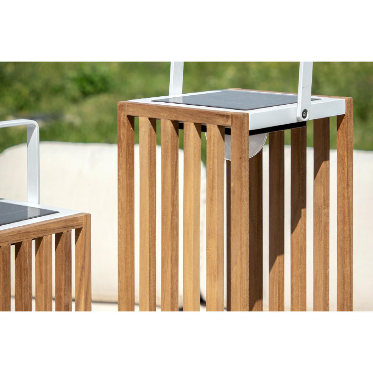 I love the large solar lamp for its clean, minimalist design that enhances any outdoor space. Its natural wood slats give it a versatile, contemporary look that pairs well with both modern and rustic exteriors. This lamp works especially well in gardens, patios, or pathways, bringing a warm glow without the need for wiring or complex installations. To style it effectively, consider grouping it with other outdoor teak or rattan furniture for a cohesive look, or use it as a statement piece along a garden walkway. Practical tips include placing it in areas where it can catch maximum sunlight during the day to ensure full illumination at night - it’s a simple, eco-friendly way to brighten up outdoor living areas.