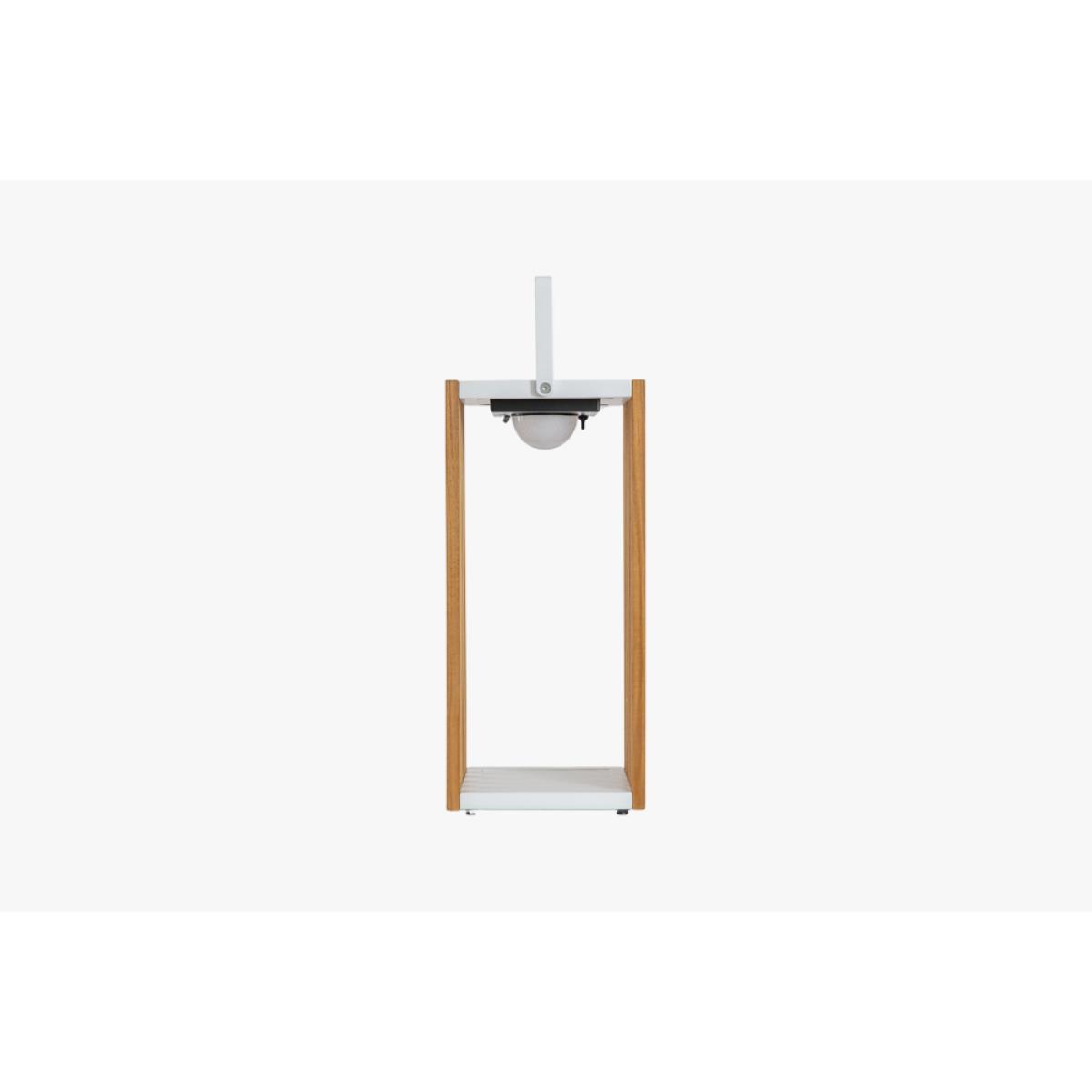 Give a little glow to your outside space with the sleek & chic Sol Solar Lamp, teak wood panels and an aluminium frame will add stylish shine to any space. With 3 light settings, the lamp will shine for up to 5 hrs on high, 8 hrs on medium, and 12 hrs on low. It's also USB-chargeable for up to 60 hours of light (Charger not included).