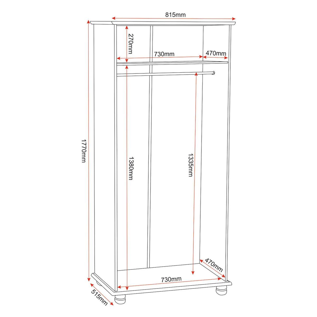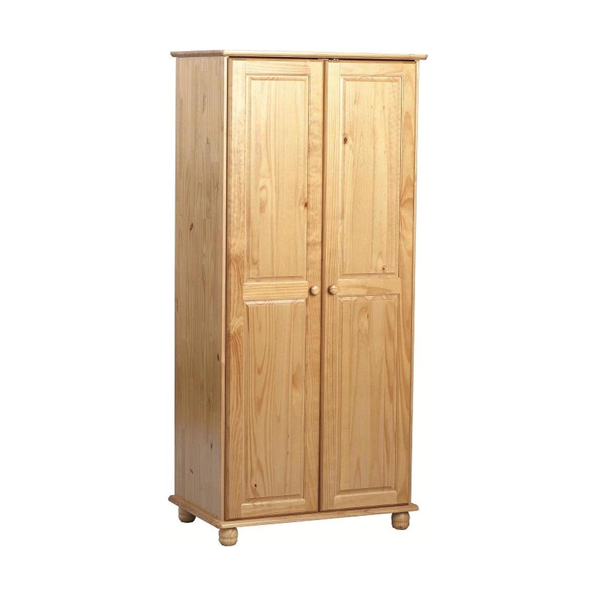 Crafted from solid wood with a pine finish, this wardrobe sits on bun feet and features round wooden handles. Please note, unfortunately we cannot deliver this item to the Channel Islands.