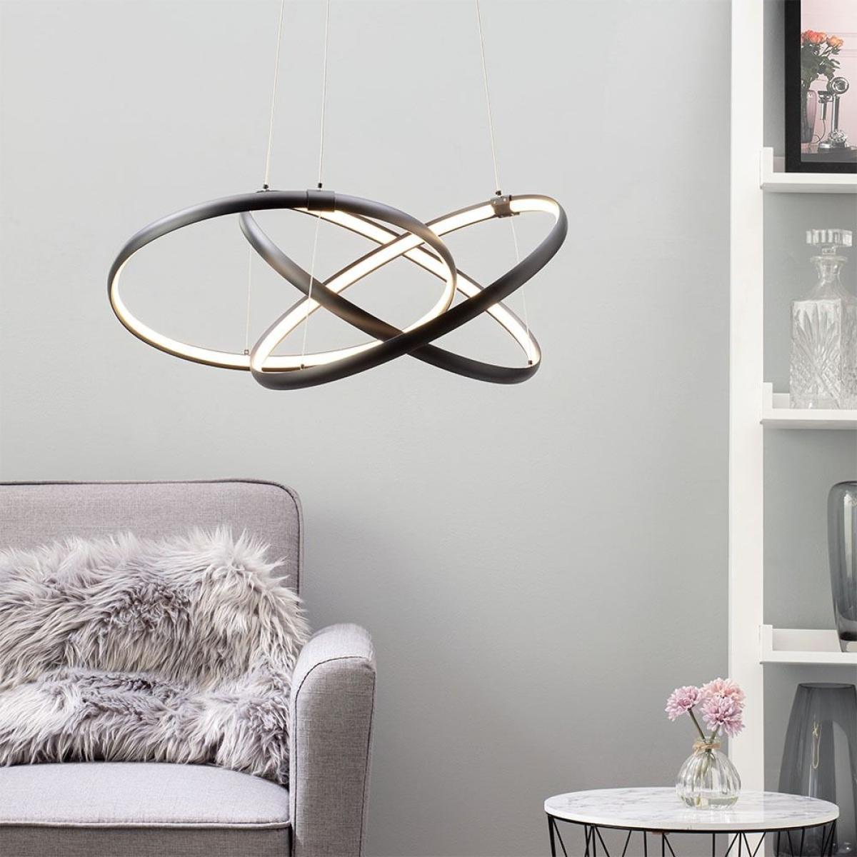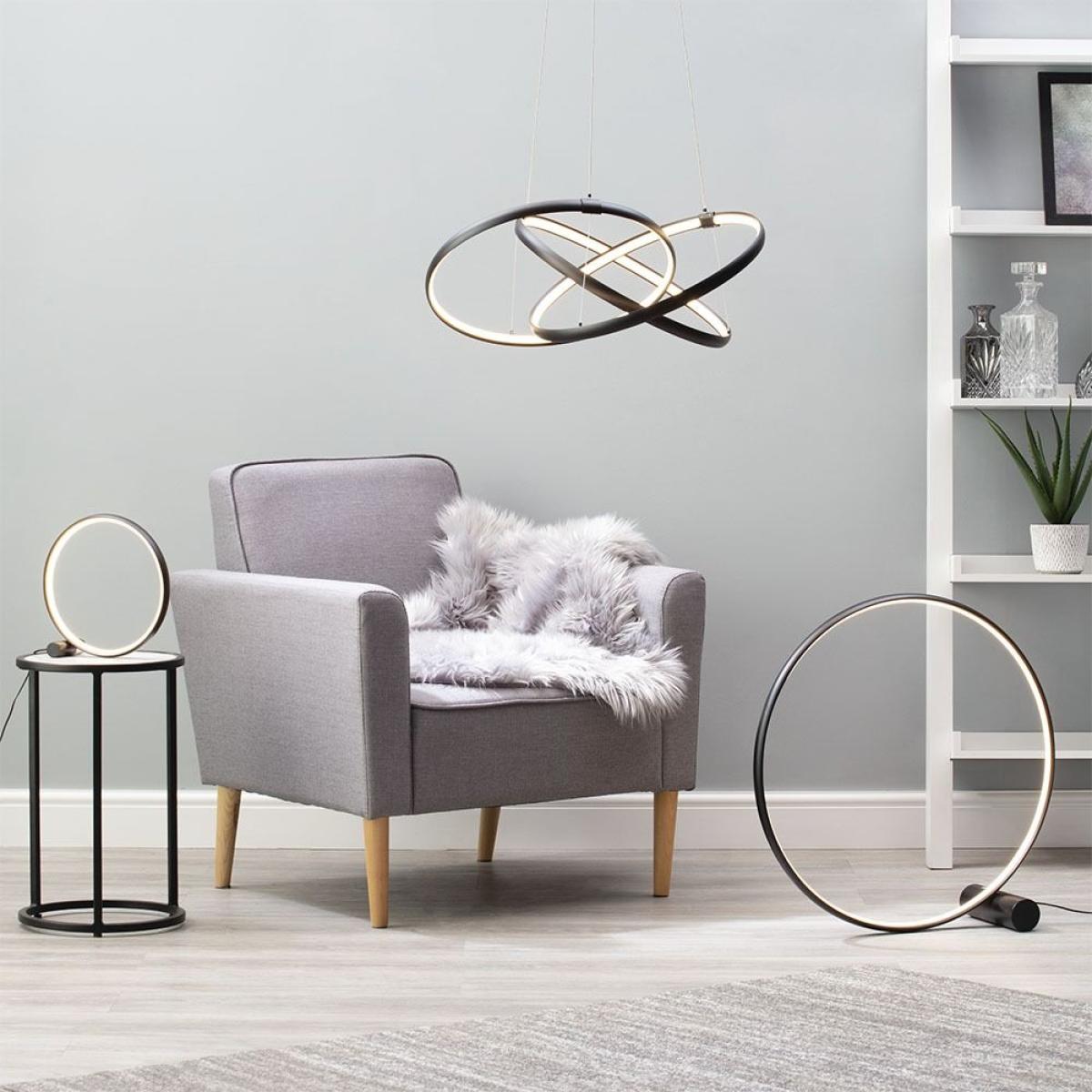 The new Sola LED Triple Ring Ceiling Pendant adds a modern and sophisticated aesthetic to your home, with a beautiful matte black colour that looks stunning in the illumination of the ringed integrated LEDs on the inside of the halo. This wonderful ceiling pendant could make a statement in any room, especially the living room, dining room or bedroom, where a good ceiling pendant light is essential.