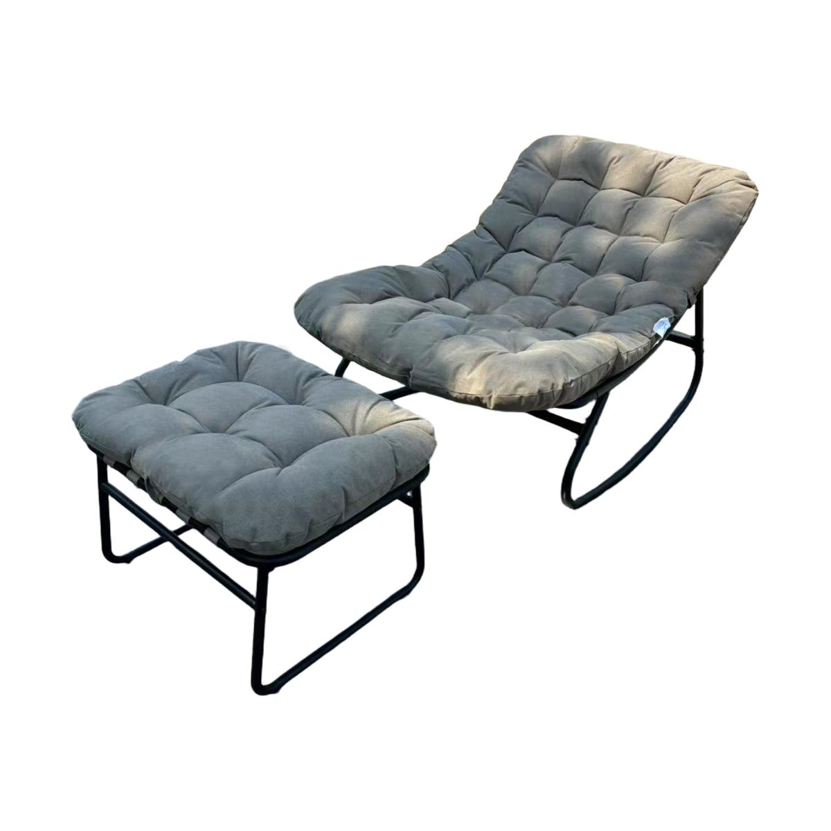 Relax in comfort and style with the Solace Outdoor Rocking Chair and Stool - the perfect addition to any garden or patio. Featuring a strong metal structure for lasting durability, this elegant outdoor rocking chair comes complete with a matching stool and thick, comfortable cushions for the ultimate in outdoor relaxation. Ideal for enjoying peaceful moments in the sun, it is designed for both comfort and stability. With easy self-assembly and quick, efficient delivery, the Solace set is a hassle-free way to enhance your outdoor living space with both function and flair. Dimensions - Chair (W78cm x D101cm x H74cm) Stool (W62.5cm x D44.5cm x H45cm)