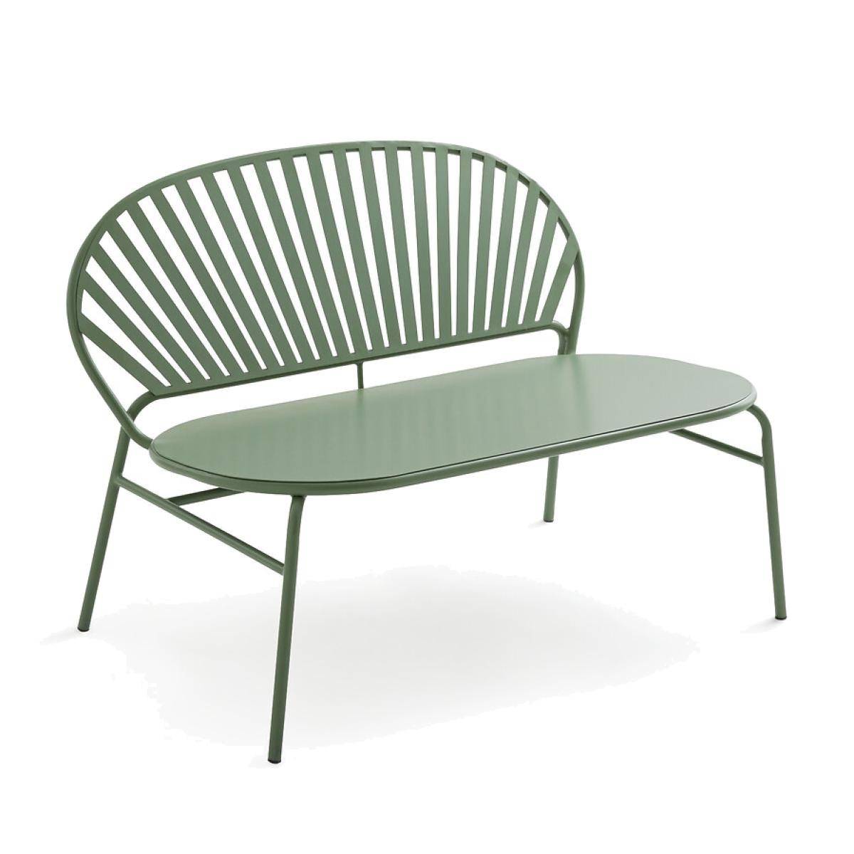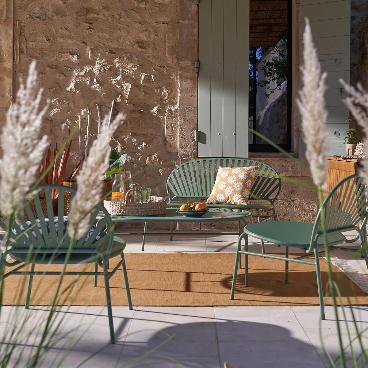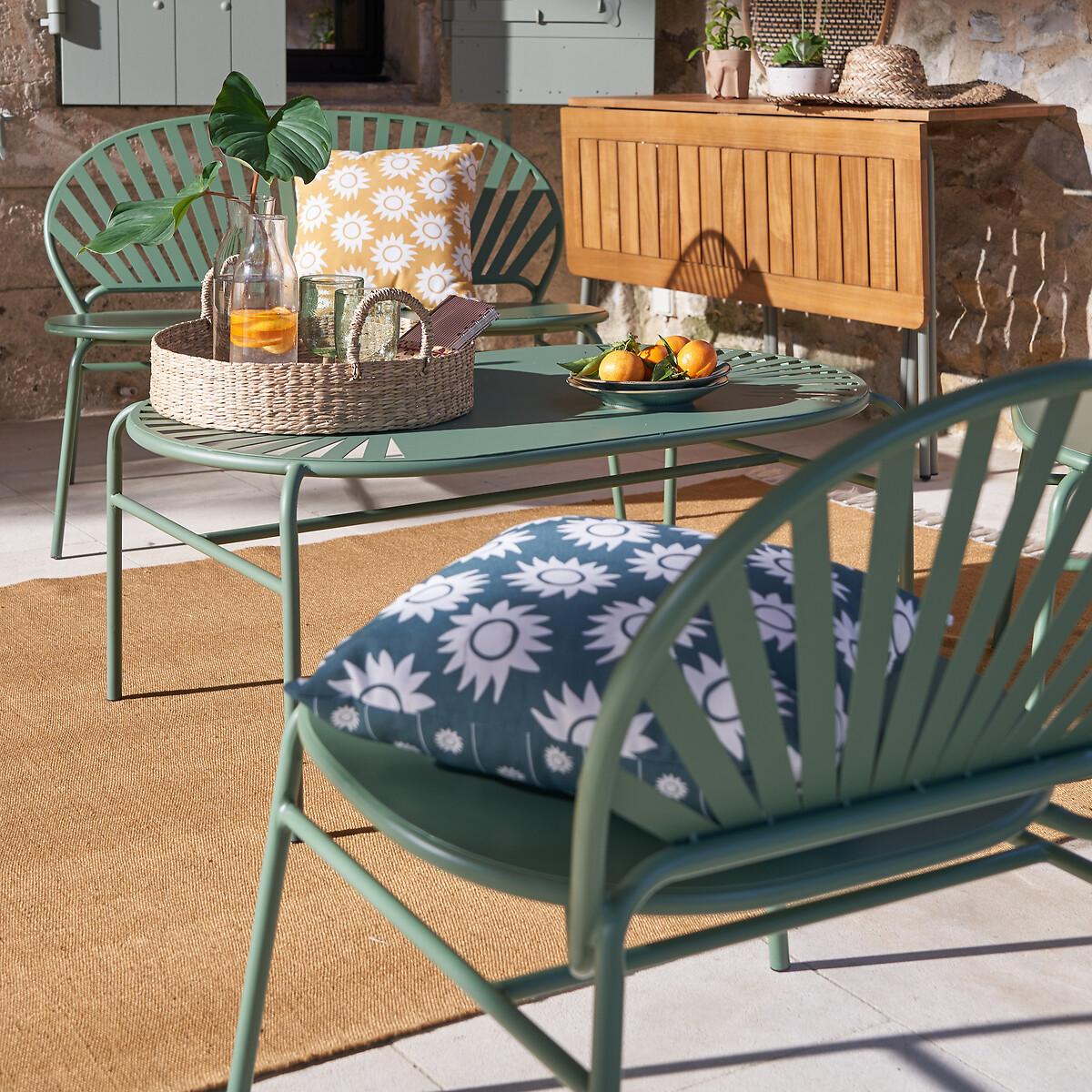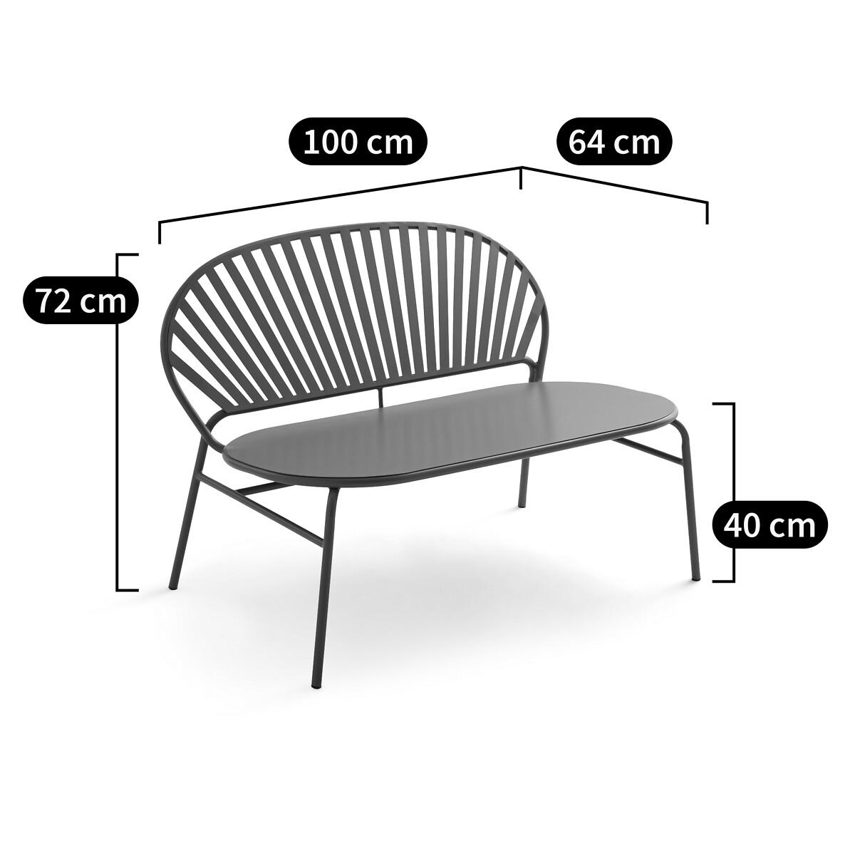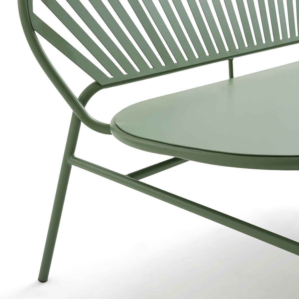 With its generous seats and curved shapes, the Solale range has a bright and colourful character.. The Solale garden bench goes perfectly with the coffee table and armchairs from the same range for sale on our site.. It's up to you to create the garden look you want!Created by La Redoute Interiors. Product Details • In tinted steel with epoxy finish • Oval-shaped seat and backrest, openwork slat backrest. Dimensions • Length: 100cm • Height: 72cm • Depth: 64cm • Seat height: 40cm • Weight: 11.1kgDelivery:. Sold pre-assembled. Available for home delivery. Note! Please check that all access points are large enough to accommodate your delivery (doors, stairs, lifts).Dimensions and weight of parcel1 parcel • L103 x H75 x D69cm. 16kg.