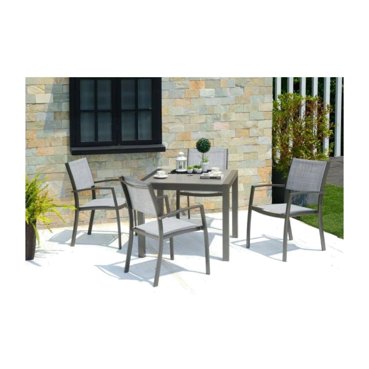 With the Solana 4 Seater Square Dining Set, all of the family can eat in style. The Solana range is 100% maintenance free. The frames are constructed from rust-free aluminium 6063, a material commonly used for boat building, and is ideal for outdoor use. Following this, the chairs and table are then treated with a multi-layer powder-coating before a final step of oven curing. Should the finish become soiled, simply clean with soap and water. What's more, the chairs can conveniently be stacked for easy storage. The table also has a sealed duraboard top. This is an environmentally friendly, durable material which is highly UV-resistant and has a unique surface finish. Made of high quality eucalyptus sawdust and polyethylene resin, the surface is also treated with a scratch resistant resin.