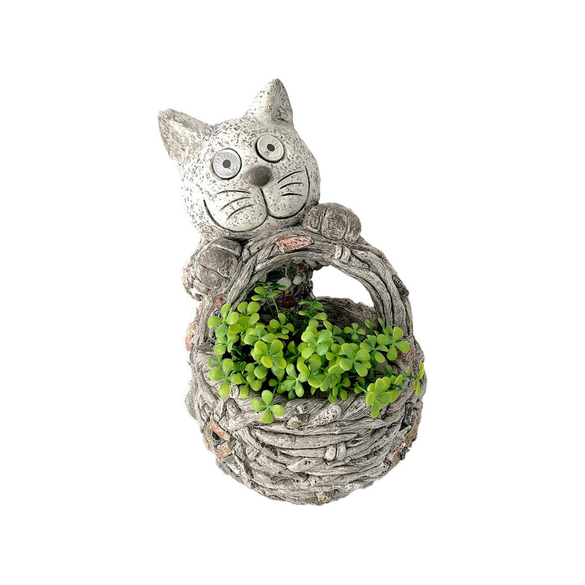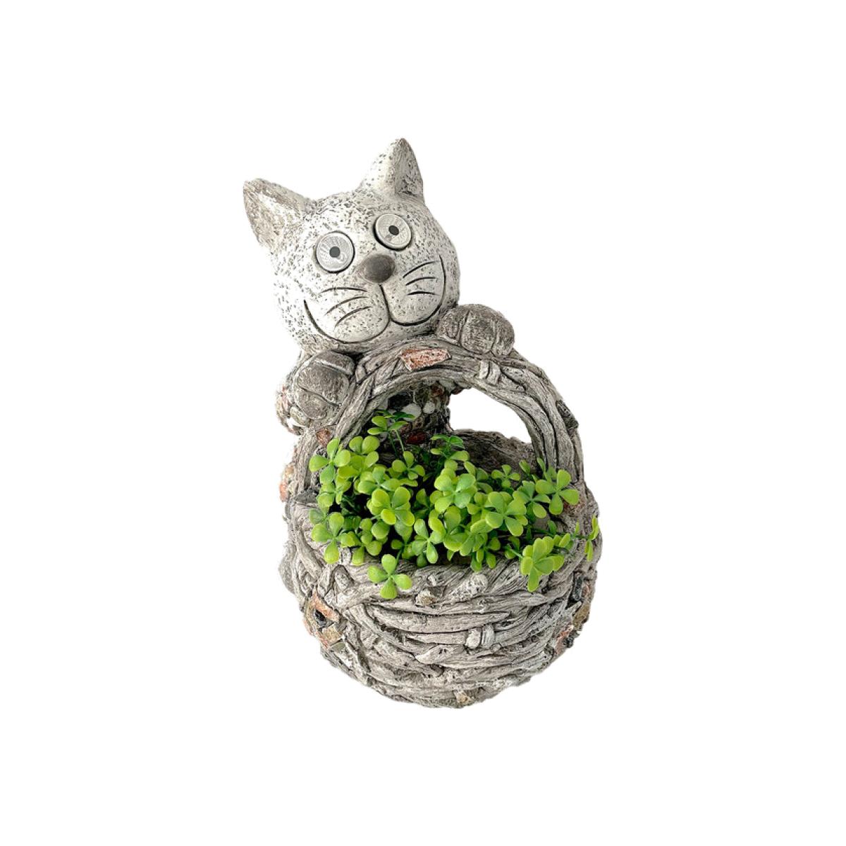 Solar Cat Pebbled Planter