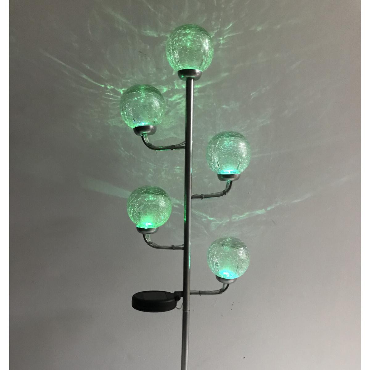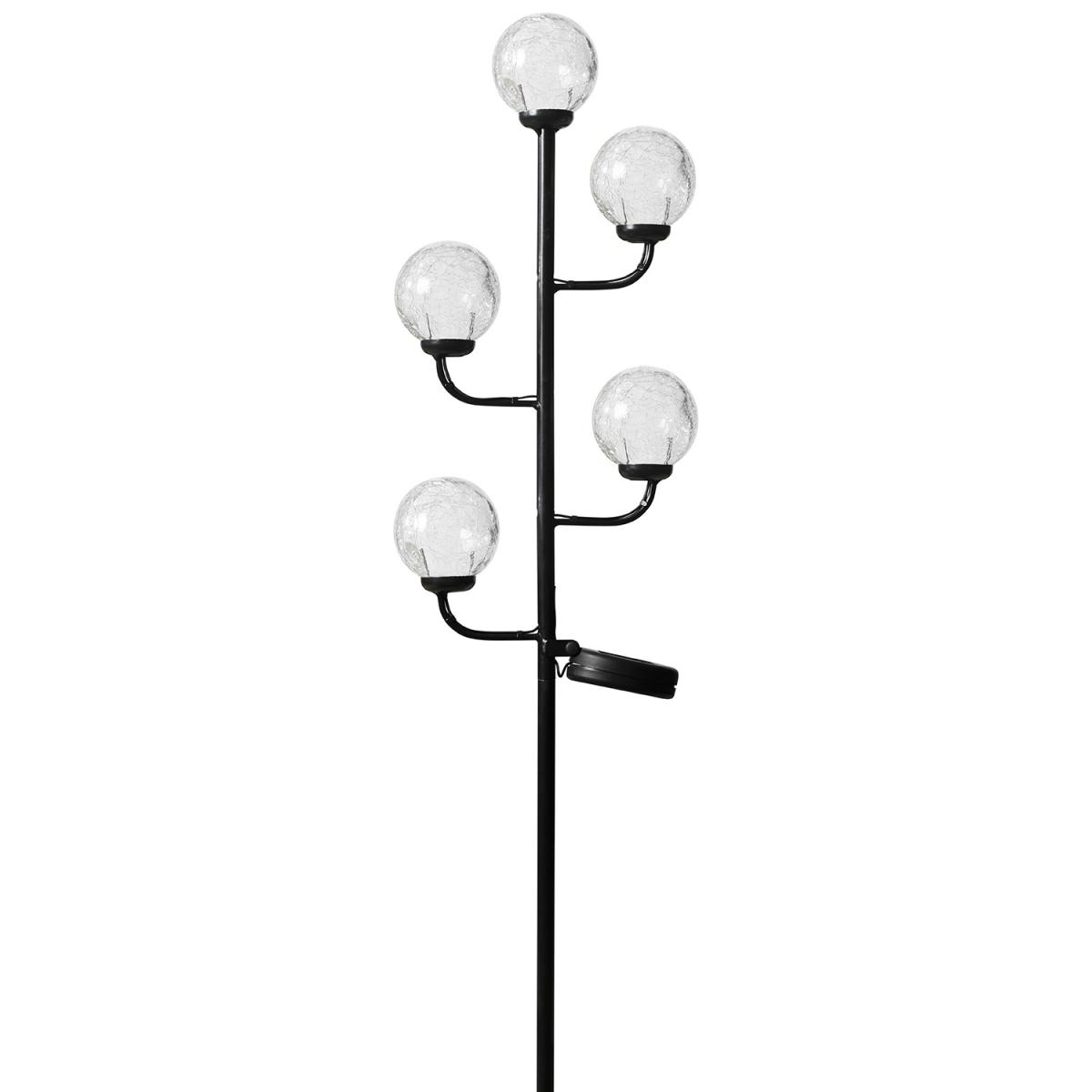 An impressive and eye-catching light, this Solar Colour Changing Crackle Ball Stake Light will add a striking touch of interest to any garden. Standing at over 80cm tall, this stake light features five branches topped with crystallised crackle balls. Powered by an attached solar panel, when the sun goes down the crackle balls will turn on and emit a warm white glow. This Solar Crackle Ball Stake Light is perfect for anyone who wants to bring some dramaticism into their garden, and it would be perfect for framing a doorway or signalling a path.