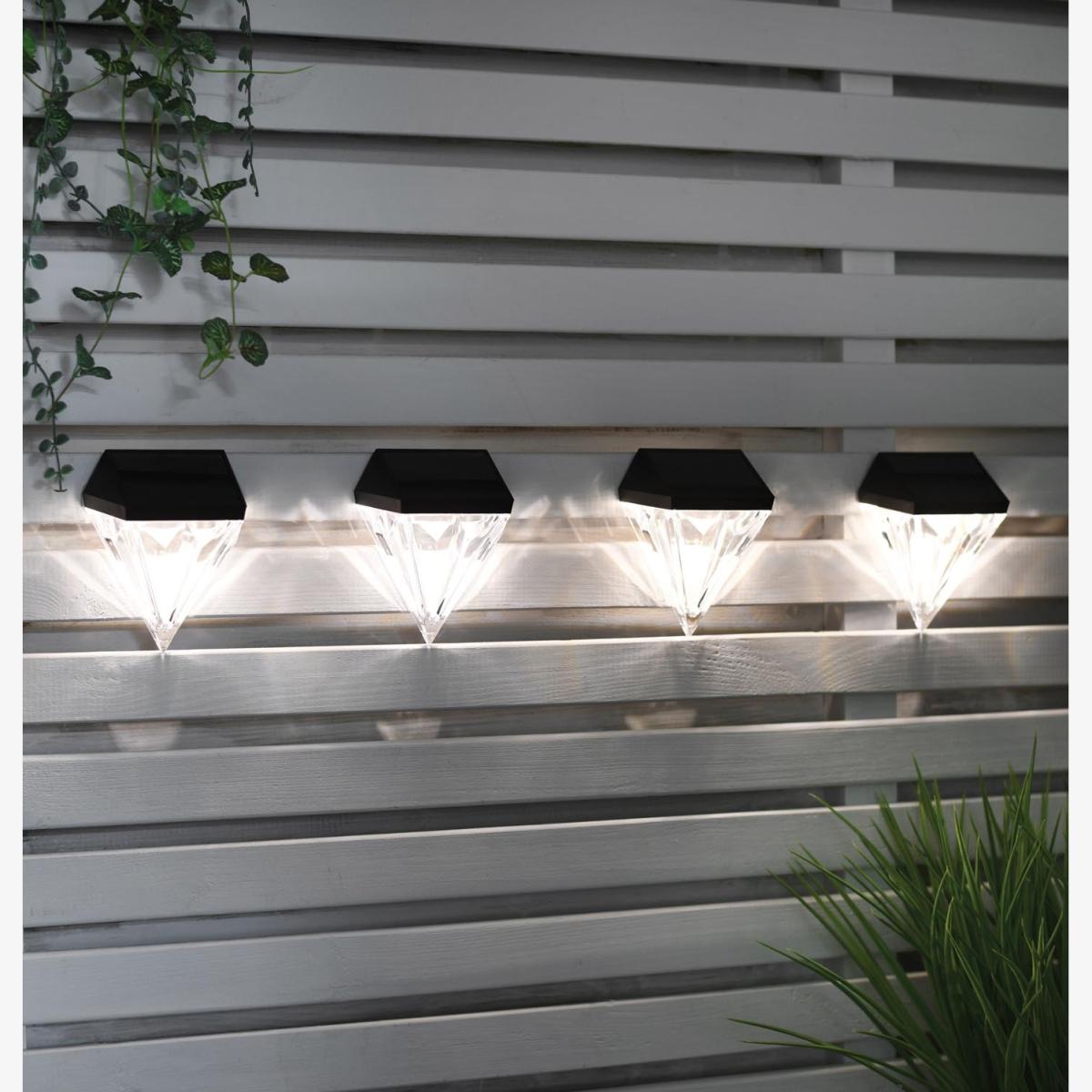 Light up your outdoor space or garden easily and effectively with these stylish Solar Diamond Wall Lights. This smart lighting fixture has a modern design and is completely wireless, making it super easy to install. Gaining its power from the sun, these solar wall lights will charge all day and glow all night to illuminate pathways and more. Solar Diamond Wall Lights - Black