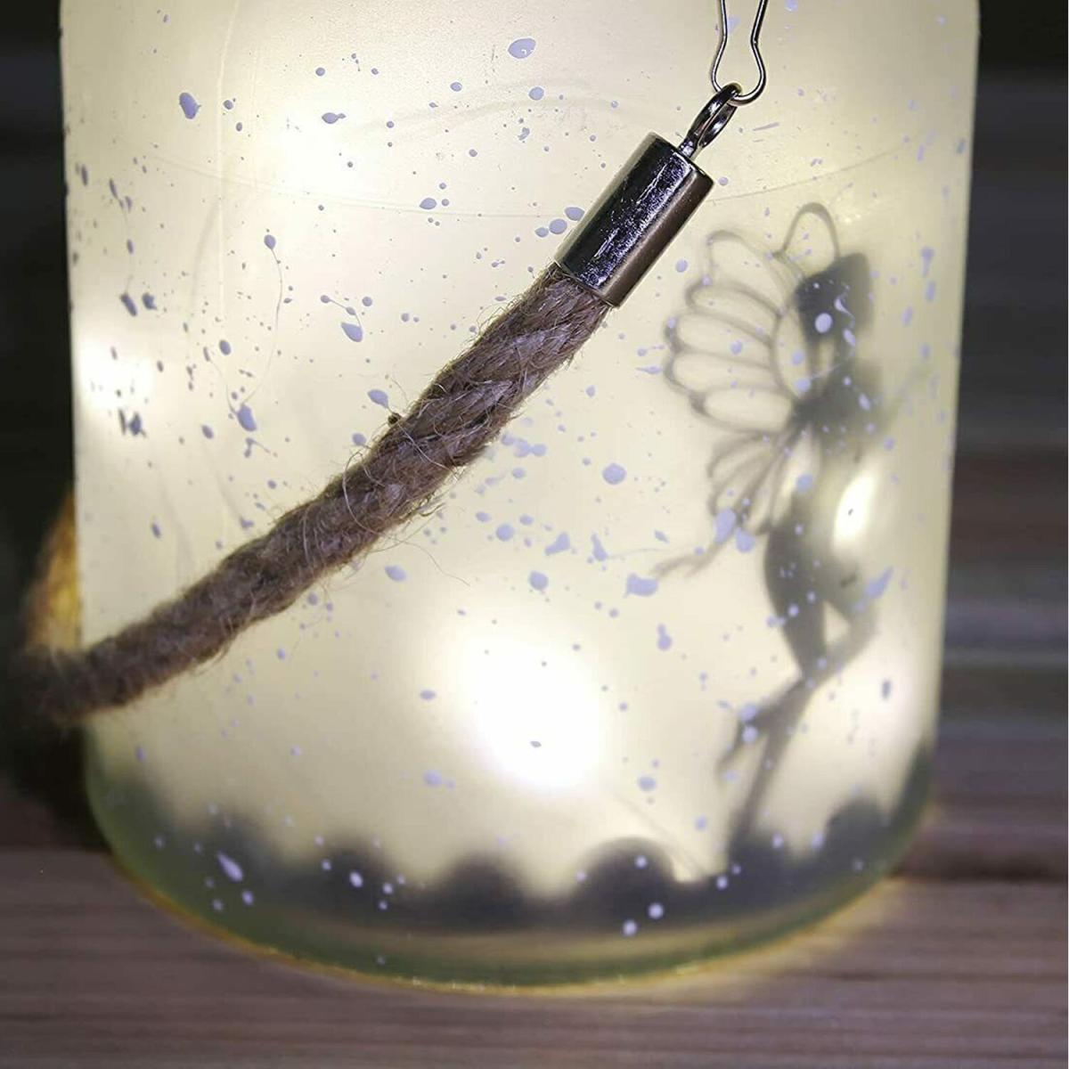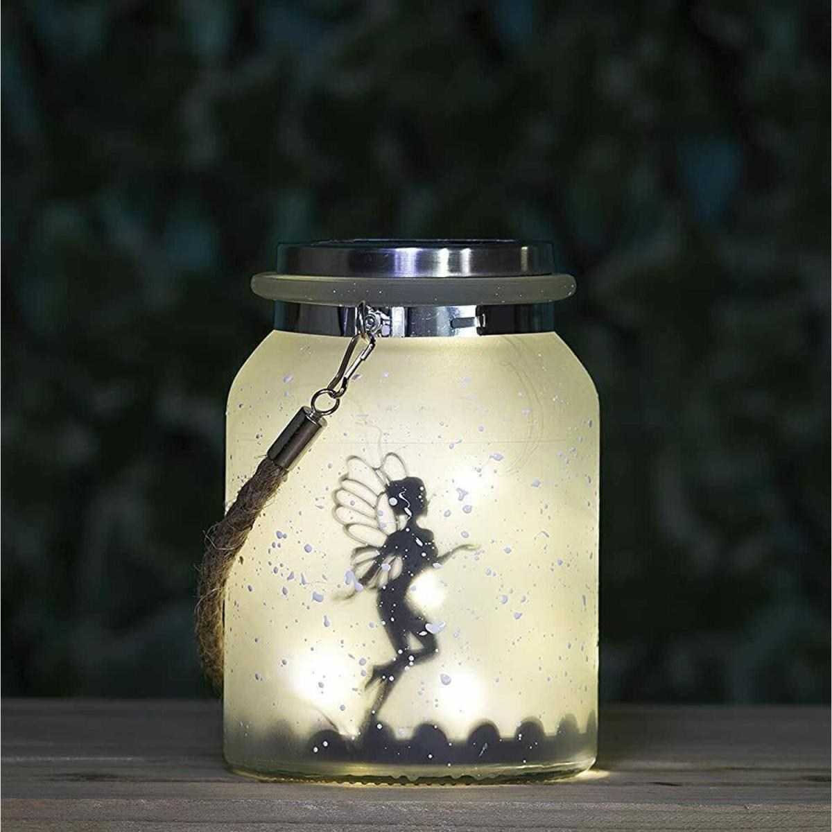 Bring some magic into your outdoor or indoor space with this charming solar powered fairy lantern. Easy to use and suitable for hanging within the home or garden. This frosted glass effect jar will bring an eye-catching focus to any area you choose to place it. Taking its power from the sun, when utilised outdoors simply place or hang in a well lit area and allow it to charge throughout the day.