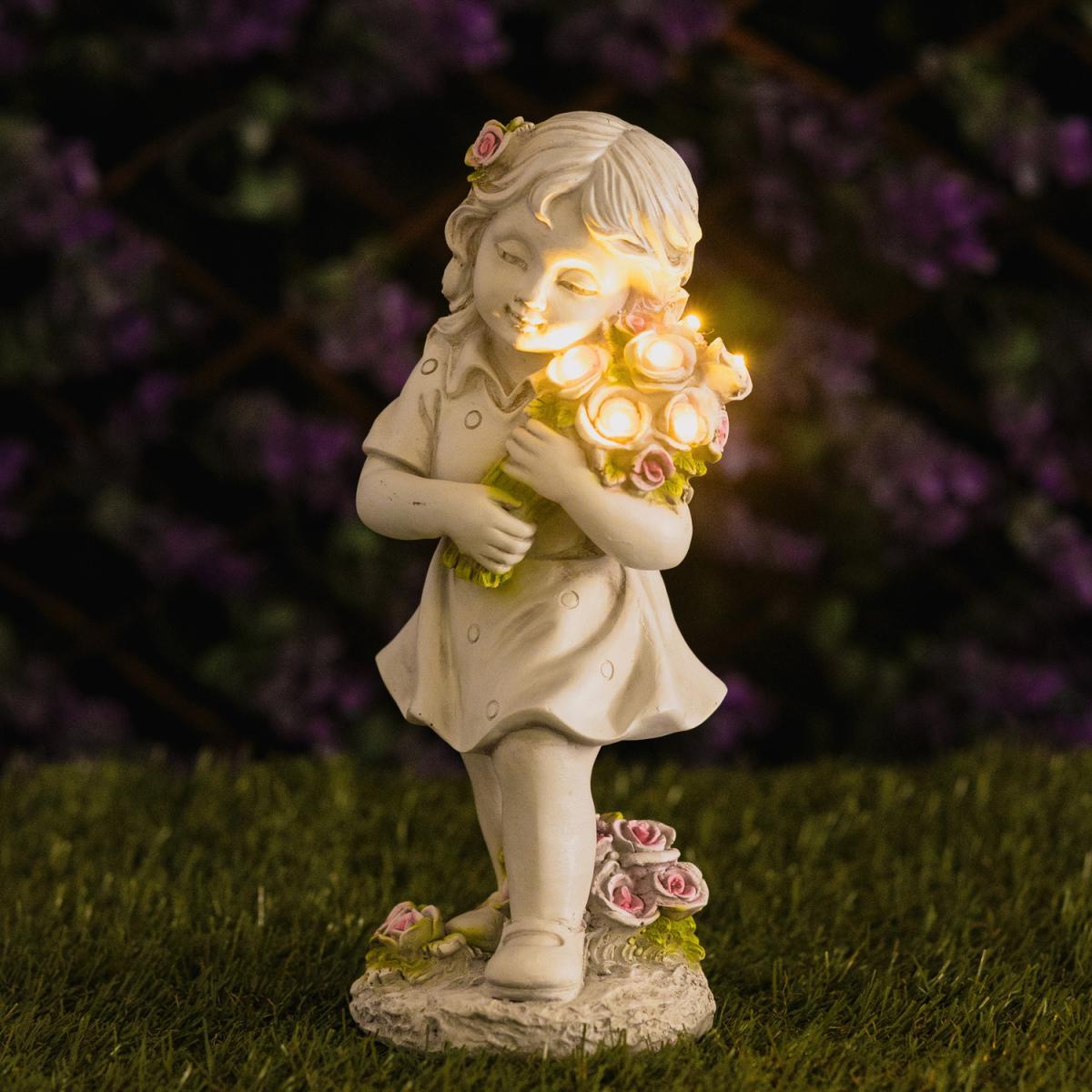 Light up your outdoor space with this Solar Fairy Garden Ornament!Let this light shine through all of your garden. Manufactured from resin with a stone effect, this girl looming over a fountain is sure to stand the test of time as she is frost protected and completely weather proof.