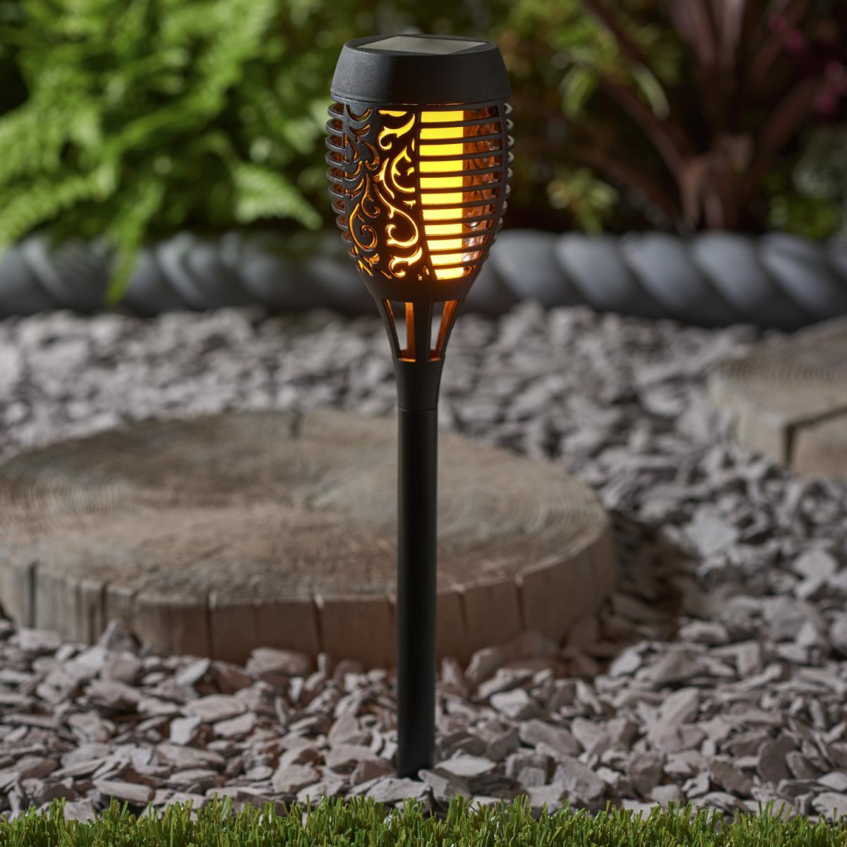 Illuminate your space with the attractive and intricate Solar Flame Mini Stake Light. Fantastic for your back garden or front lawn, it adds interest and inviting light without the need for wiring thanks to its clever solar panel. The light charges during the day and has an auto-sensor so it automatically turns on in the dark. It provides up to 8 hours of light when fully charged and shuts off again when it begins to get light.