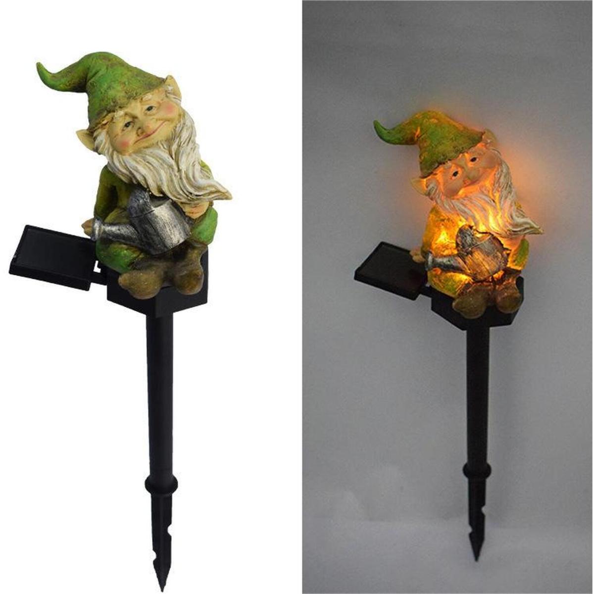 The product is charged by solar energy, which is energy-saving and environmentally friendly. It uses LED lighting, which requires no wiring; it is plug-and-play. It is suitable for patio, garden, balcony decoration or lighting. Solar Garden Cartoon Resin Dwarf Genie Lights - Green