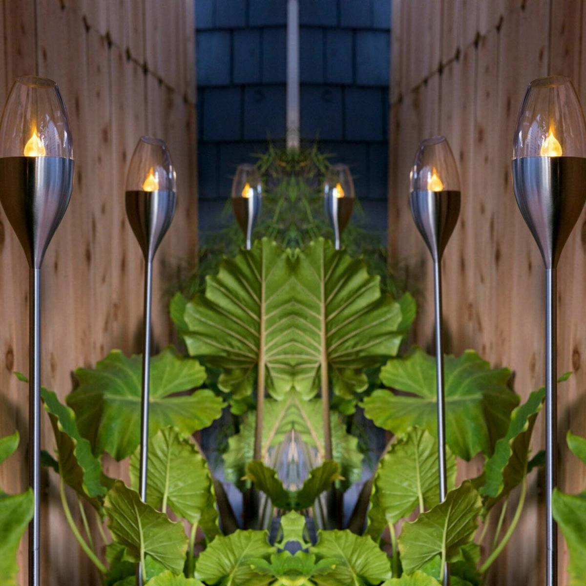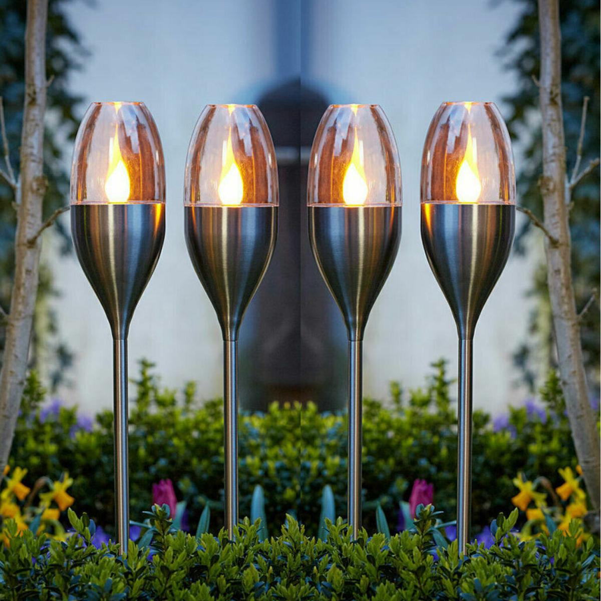 Give your outdoor space some flame with these novelty stake lights. These lights will create an authentic look in your garden whilst giving a relaxing illusion of a fire. Place these lamps at your front door, on your decking, near your patio, anywhere that will give your garden a little light to make those cozy nights outside even better. Manufactured from Stainless Steel surround and a plastic body, these lights are weatherproof & waterproof, letting you enjoy your garden for longer. Simply place these solar stakes lights in soft ground that is also in direct sunlight so they can charge throughout the day and watch as they automatically illuminate at night. Sit back in your outdoor space and watch as these flickering flame effect lights dance on the path or grass while you sit with a glass of red or cup of tea and a good book.