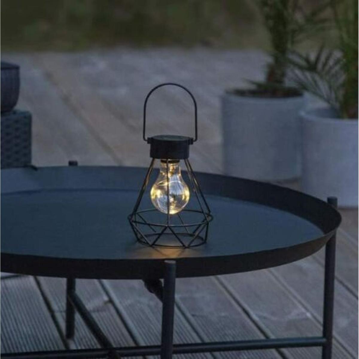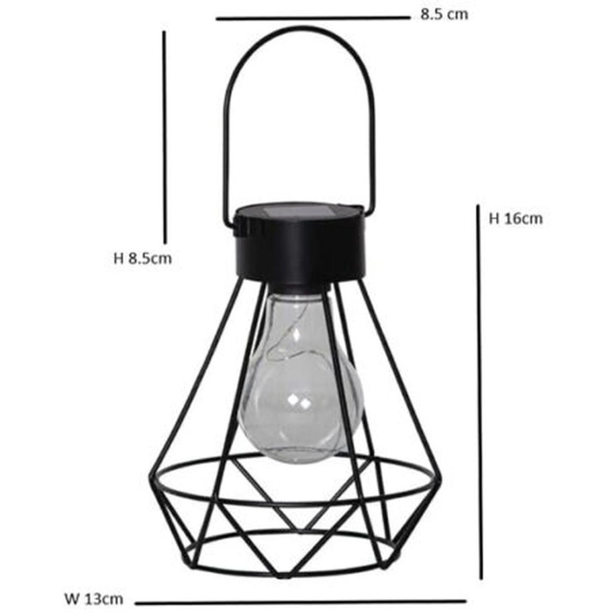 Give your outdoor table a splash of light with this Solar Lantern. This decorative little lantern will make the perfect decoration for any outdoor setting. With a decorative geometric metal body, super warm white LED & solar panel, this lantern is ideal for lighting up tabletops on your deck, patio or in your garden. It has a manual on/off switch & will work for 6-8 hours in a full charge of 6-12 hours (approx.)This little solar lantern will bring a modern retro vibe to your outdoor space.