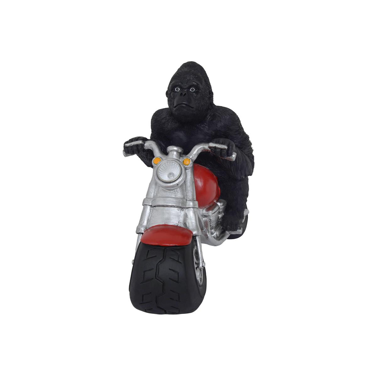 This fun and unique Solar Gorilla Motorbike Statue is the perfect addition to brighten your outdoor space. With a warm white LED contained in the motorbike headlight and hand-painted statue, this Solar Gorilla Motorbike Statue will be sure to stand out in your garden adding a unique feature to your space. Solar Gorilla Motorbike Statue - Red