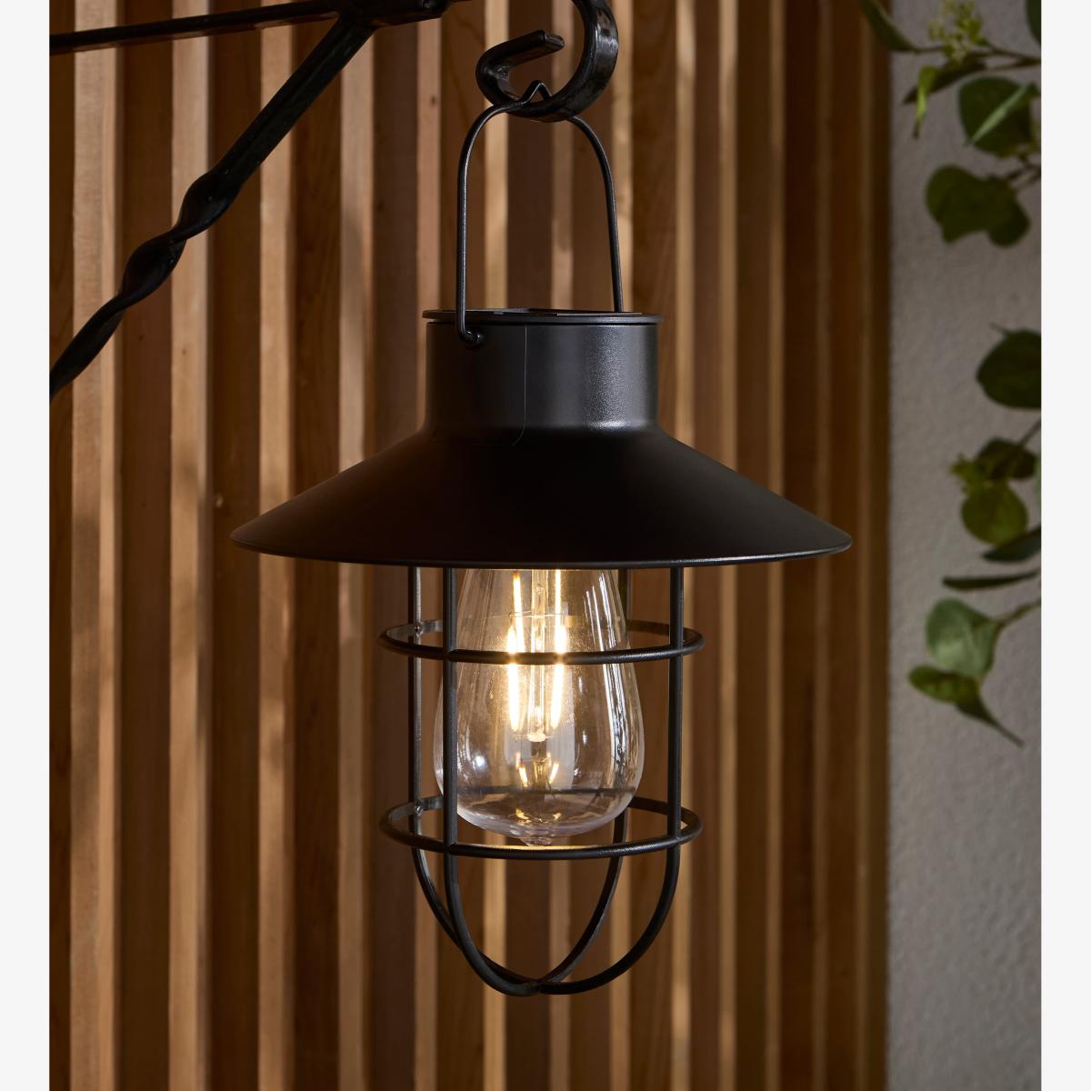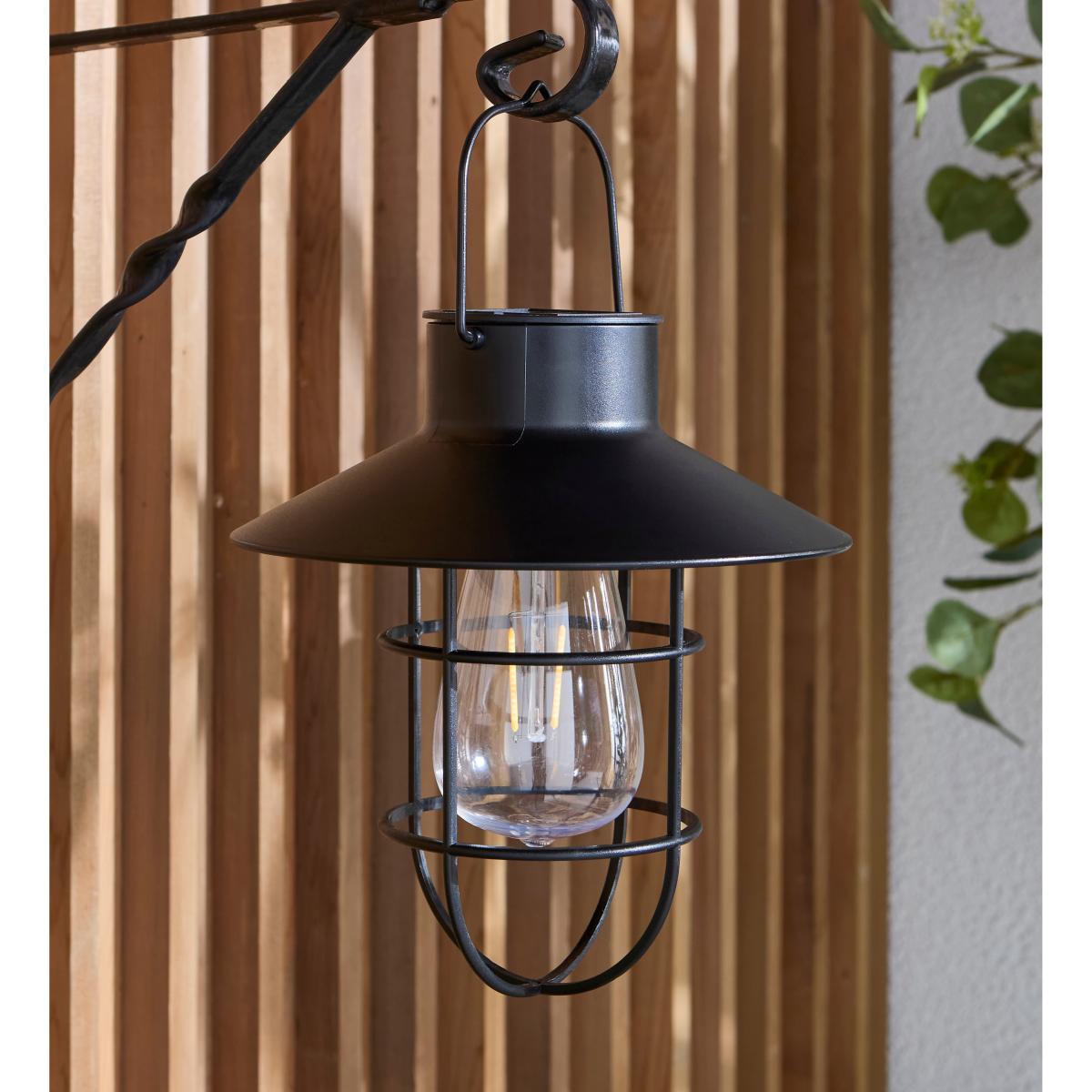 * Hanging light * Black cage * Solar powered * Warm white bulb colour * Weather resistant Add a touch of sophistication to your garden décor with the Solar Hanging Warm White Lantern. Featuring a single warm white LED, this weather-resistant lantern provides a soft glow that’s perfect for pathways or patios. Its easy-to-clean design makes it as practical as it is beautiful. Please Note: In accordance to The Offensive Weapons Act 2019, this product is now click and collect only. You may be asked to show ID upon collection.