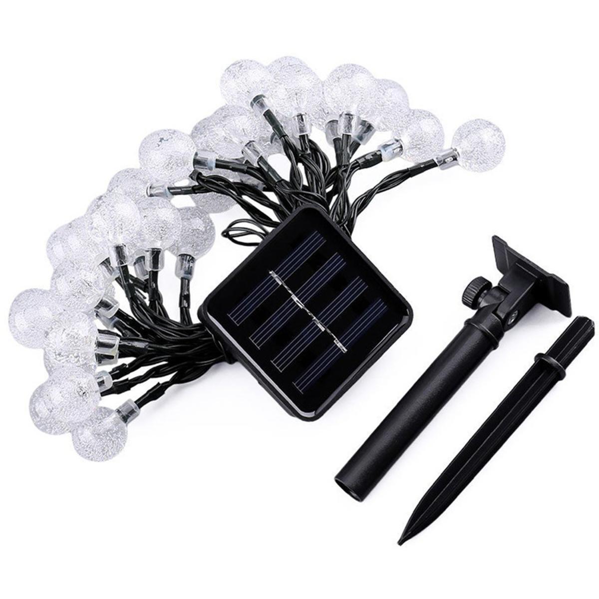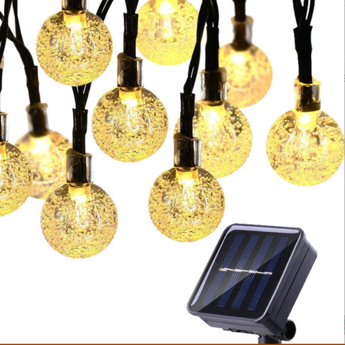 Made of high quality PVC and copper wire,this solar string light feature a bulb design. There are 8 different modes:fireflies flashing,fading,waves,chasing/flashing, fading slowly, twinkle/flashing and steady on. There are three different lighting colors:warm white,white,colourful with four different sizes:30LE. D 6.5M,50LE. D 9.5M,100LE. D 12M,200LE. D 22M.. It will be a great addition to your home and garden.