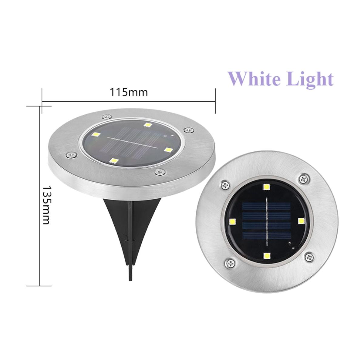 Each light is fitted with 4 LED and each light features a 600mA H battery and runs on solar power. these lights are made from plastic and stainless steel. It is simple to use the ground lights. Just push the spike into the ground. The diameter of the lights is 11.5cm and its height is 13.5.