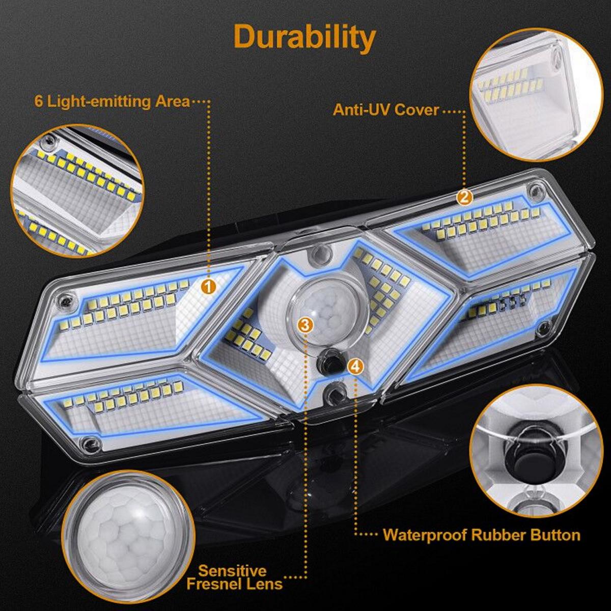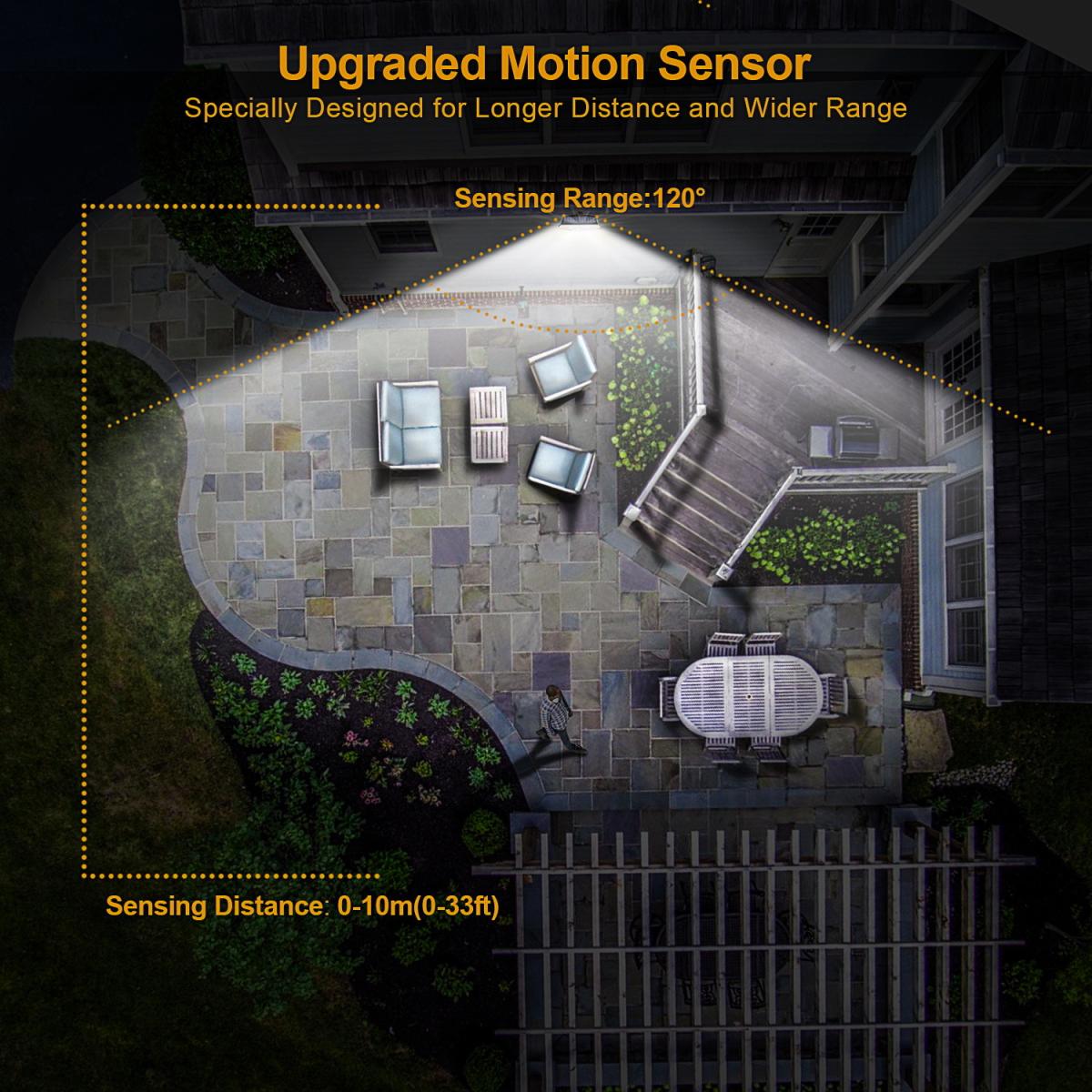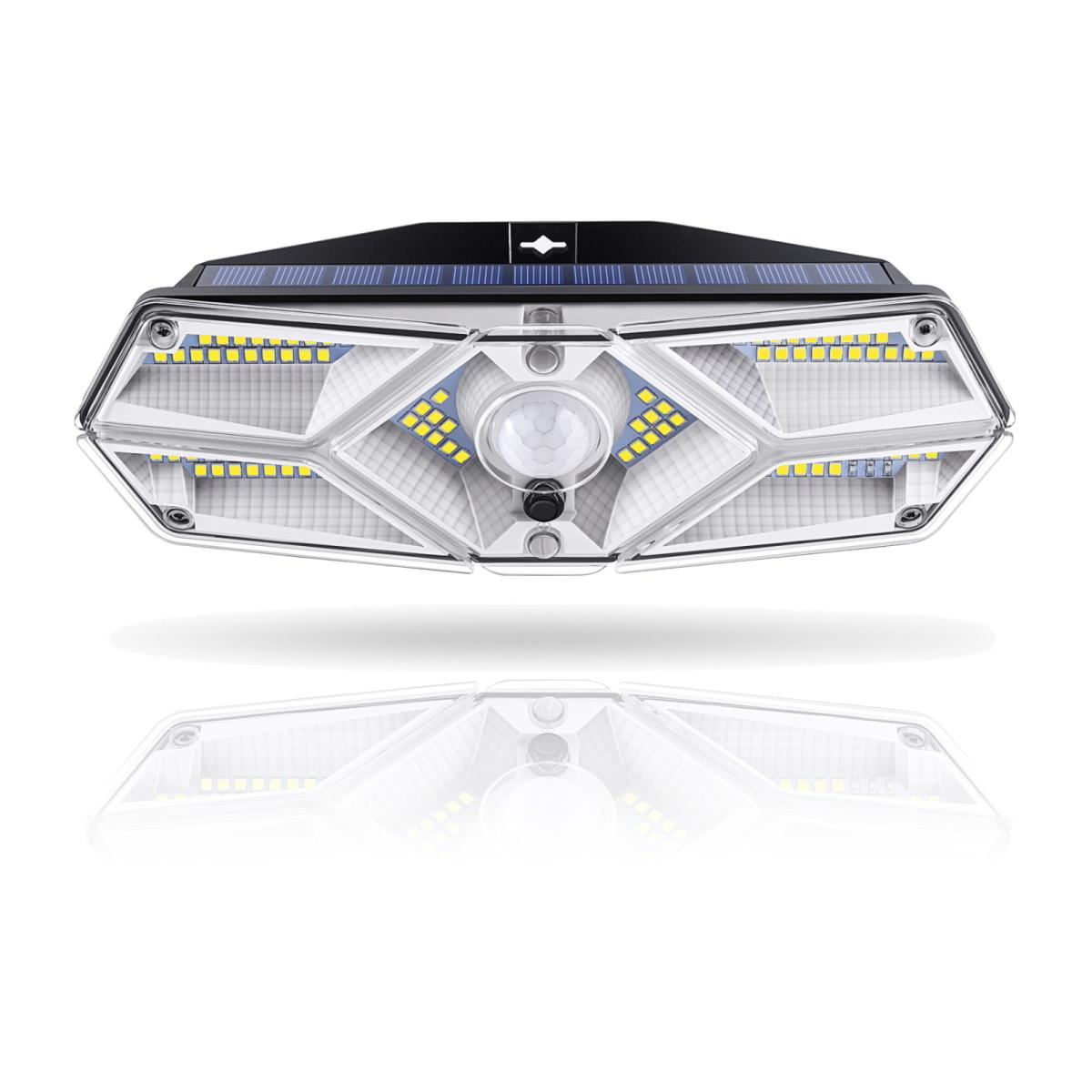 The Solar LED Motion Activated Wall Light is equipped with 104 high brightness LEDs with an upgraded high capacity lithium battery and PIR sensor allowing it to automatically illuminate with high brightness anyone that passes by. Contained within a one-piece diecast aluminium body with anti-UV lens cover, it is rated IP65, waterproof and rustproof for outdoor use. It has three lighting modes and will detect movement up to 10 metres away. Glow mode the light automatically stays on at night until daylight or it is powered off. There is no motion-sensing function in this mode. Motion Sensor Mode (30 seconds) the light automatically turns on high when it detects movement up to 33 feet away within a 120 area at night. It then turns off 30 seconds after the movement ceases to prolong battery life. Motion Sensor Mode (60 seconds) the light instantly turns on high at night when motion is detected and turns off automatically 60 seconds after motion stops. The light emitted is 4 115 and 350 lumens. The battery is charged in 8 to 10 hours, providing 8 to 10 hours of working time.