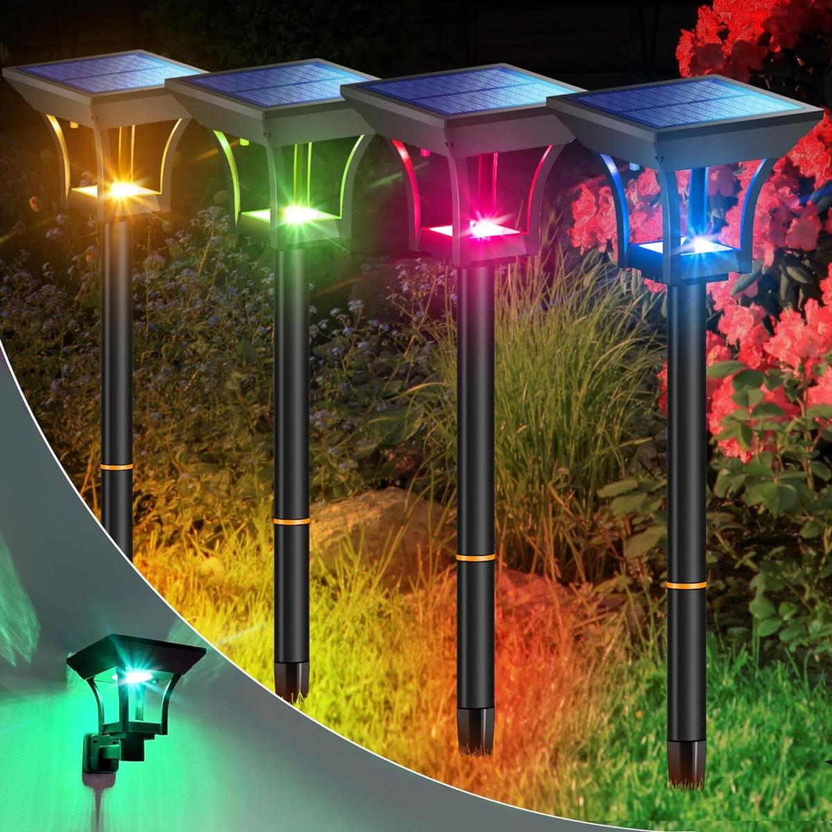 Scattered four leaf clover pattern with floor mounted style and flying wings pattern with wall mounted style. Featuring 18 brighter LEDs, these garden lights offer better value for money than other lights. Multi color solar light outdoor decoration creates clearer, more beautiful and richer patterns, creating a romantic atmosphere like a light show for your courtyard lawn, making your home warmer. To ensure long-term durability of solar path lights, IP65 waterproof and durable ABS plastic is adopted. Thanks to advanced sealing technology, you do not have to worry about short circuits and battery corrosion caused by rain, snow and frost. Our solar landscape lights are designed to withstand all types of bad weather conditions.
