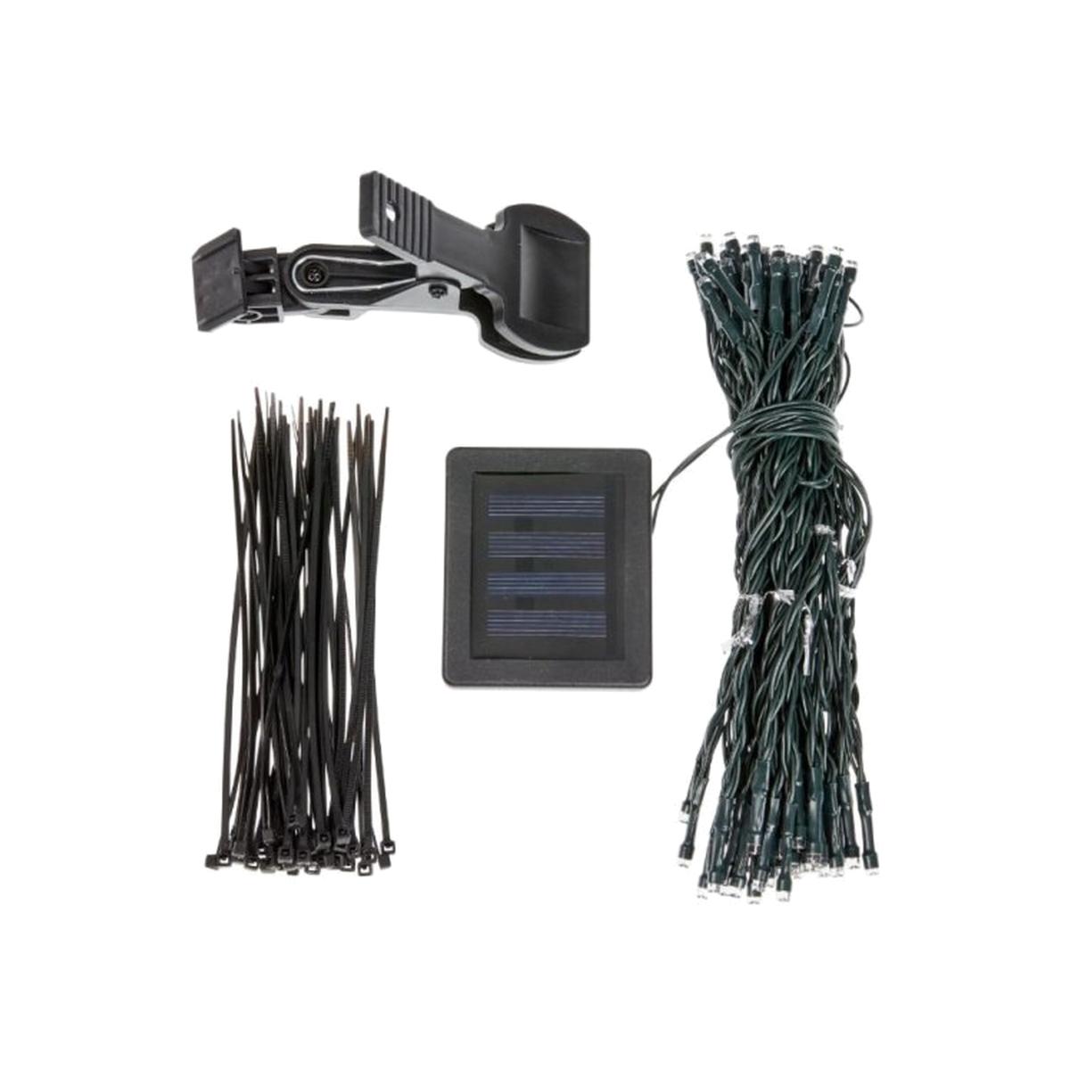 This 72 LED Solar Powered Parasol Light will brighten up your evenings in the garden. Simply attach the strings along the beams/struts of your Parasol, place the solar panel on the top of the parasol and leave out in the sun for constant light throughout your evening. With two lighting choices you can leave the LED lights on constant or for those party nights you can set to the flashing mode for that extra party sparkle. A fun addition to any entertaining night for guests or to enjoy the longer nights with! Comes with 40 cable ties Wire length from solar panel to first bulb: 179cm